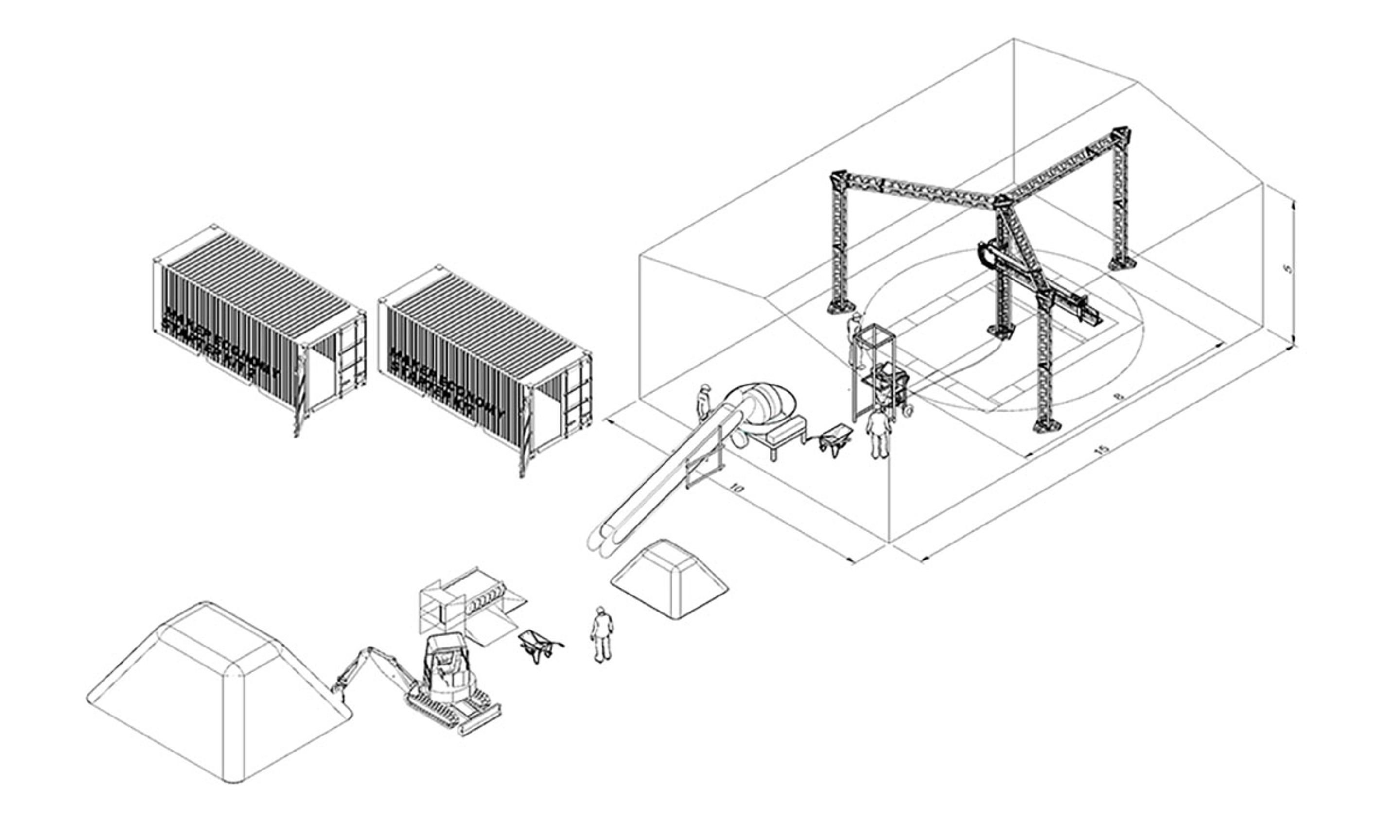 3D tlač domov nie je nový koncept. Napríklad spoločnosť Icon používa svoju tlačiareň Vulcan na tlač nových domov na vopred pripravené betónové dosky. Vulcan je široký 13,7 m a váži takmer 4,5 tony. Používa patentovanú zmes Lavacrete na vytlačenie štyroch stien, čo nie je lacné. Novo vytlačené domy stoja okolo 450 000 dolárov. S tlačiarňou ako Vulcan by však bolo nepredstaviteľné stavať na odľahlých miestach s malou alebo žiadnou infraštruktúrou.