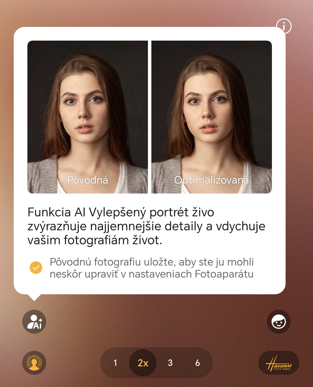 Funkcia AI portrét (vľavo pôvodná, vpravo optimalizovaná)