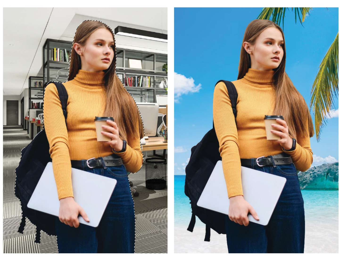 Prípadne môže nežiaduci objekt nahradiť niečím iným, čo do záberu pasuje. AI pri tom využíva modely trénované na miliónoch obrázkov, aby odhadla, ako má pozadie vyzerať – napríklad pri odstránení turistov z pláže vyplní miesto pieskom, morom či oblohou. Táto funkcia je užitočná napríklad vtedy, ak chcete odstrániť náhodného okoloidúceho, ktorý vám na poslednú chvíľu vošiel do záberu, alebo nevhodne dočasne umiestnený objekt.