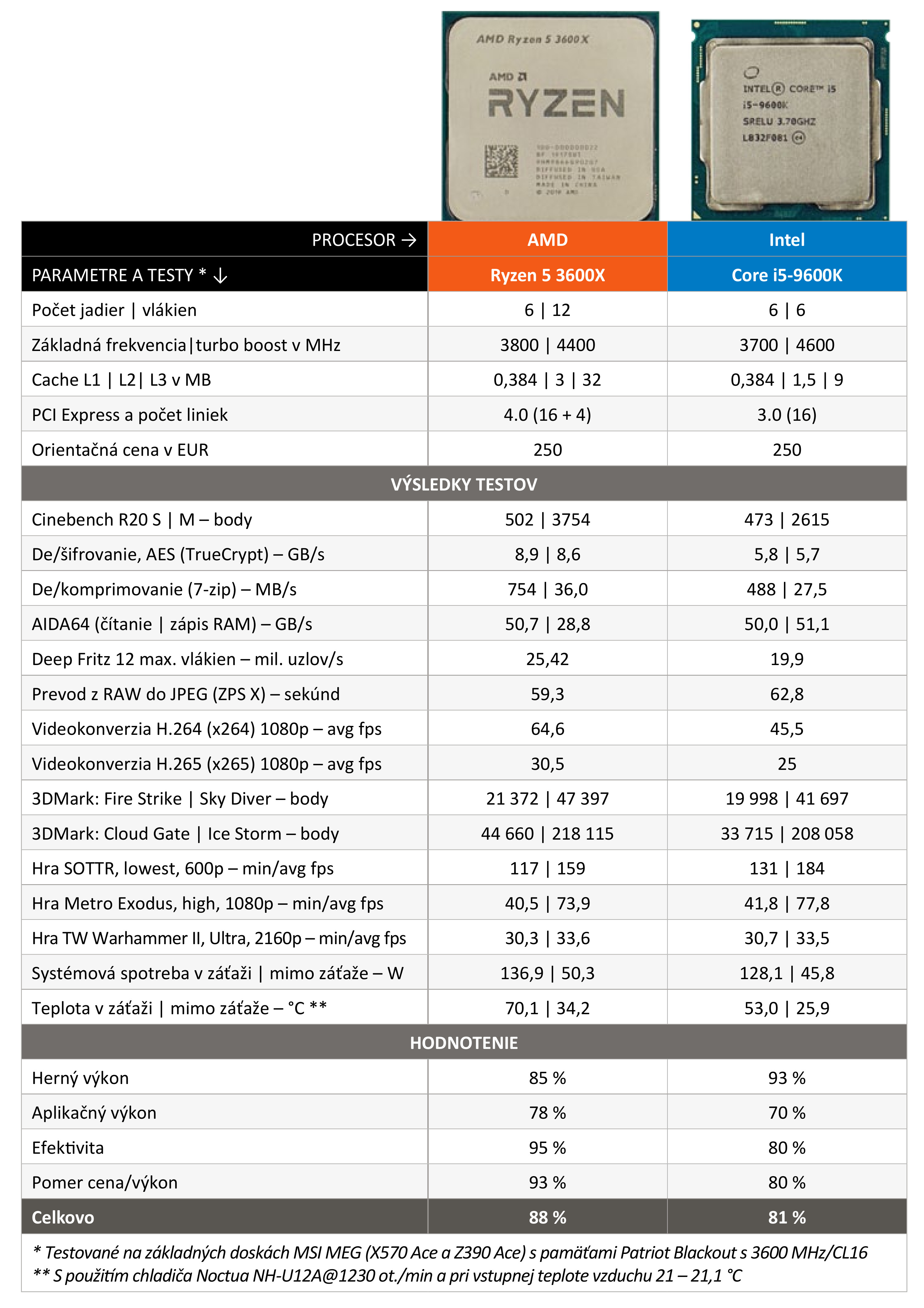 AMD Ryzen 5 3600X vs. Intel Core i5-9600K / Súboj o strednú triedu (procesorov)