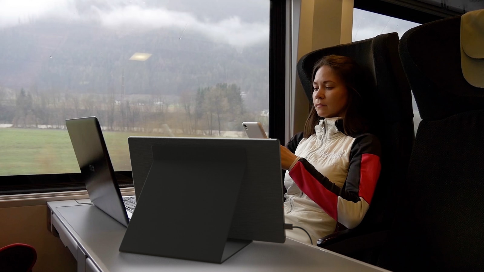 Hlavnou výhodou tohto monitora je jeho kompaktnosť. Bez problémov sa zmestí do kufríka, aktovky, alebo ruksaku. Praktický kryt obrazovky slúži zároveň ako stojan. Monitor sa pripája k PC, alebo smartfónu, ktorý podporuje režim na veľkej obrazovke cez USB-C, alebo cez HDMI.