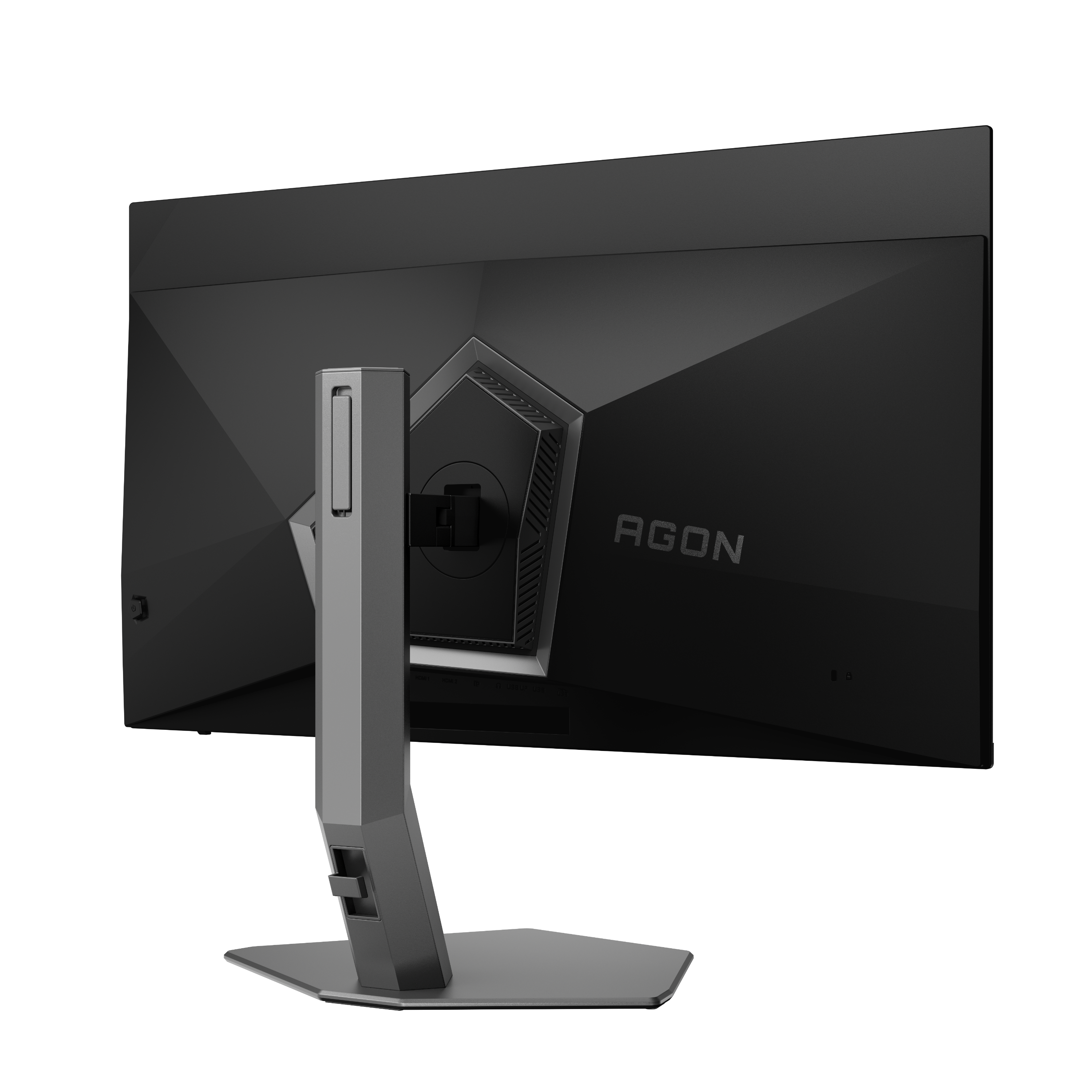 Ak máte stôl umiestnený tak, že zadná stena smeruje do miestnosti, každý, kto príde, uvidí najprv dizajn zadnej steny monitora vrátane svetelných efektov na ploche nepravidelného päťuholníka, ktoré sa však dajú vypnúť, takže ho pokojne môžete používať aj v pracovni či na pracovisku. Tvar nepravidelného päťuholníka má aj podstavec s relatívne malým pôdorysom, takže na stole vám zostane viac miesta na klávesnicu, myš a ďalšie potrebné veci. Obrazovka je umiestnená na výškovo nastaviteľnom podstavci s možnosťou otočenia panela do režimu pivot. Stojan umožňuje výškové nastavenie v rozsahu 15 cm. Samozrejmosť je možnosť naklápania a natáčania obrazovky do strán.