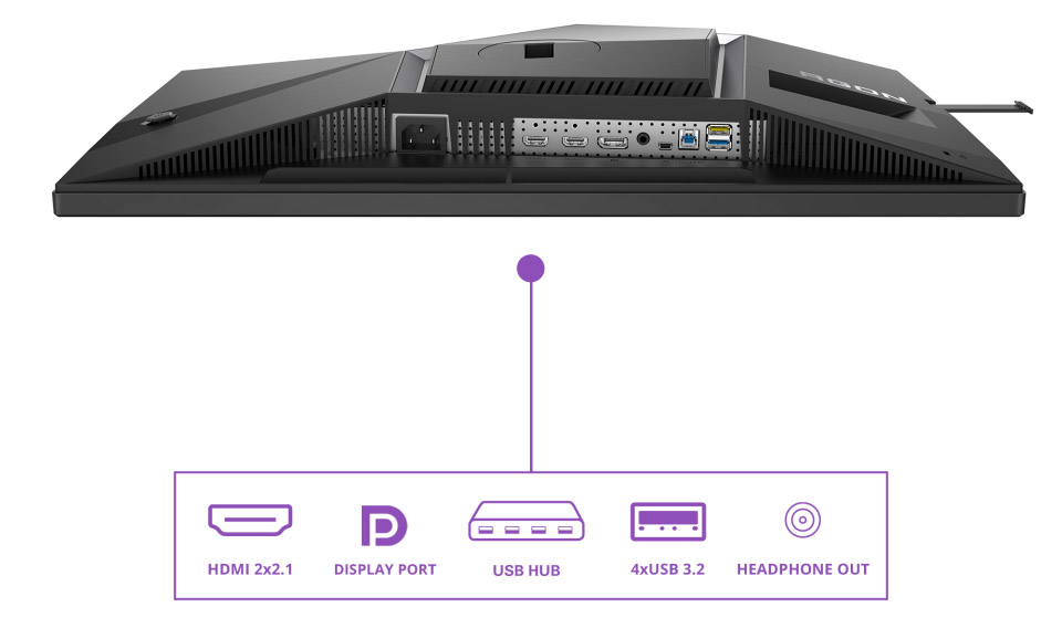 Obrazovka: Ultra-Fast TN 24,1" (61,2 cm); rozlíšenie: FHD (1920 × 1080 px), 91,4 PPI, 16:9, gamut 125,1 % sRGB, 89,4 % Adobe RGB a 93,6 % DCI-P3, snímková frekvencia 600 Hz natívne, 610 Hz OC; latencia: 0,5 ms (GTG), 0,3 ms (MPRT); jas: 500 nitov; statický kontrast 1000:1; 2× HDMI 2.1, 2× DisplayPort 1.4; USB 3.2 hub; 3,5 mm audio jack, reproduktory: 2 × 5 W; rozmery: 557 × 380,8 – 489,8 × 240 mm; hmotnosť: 5 kg