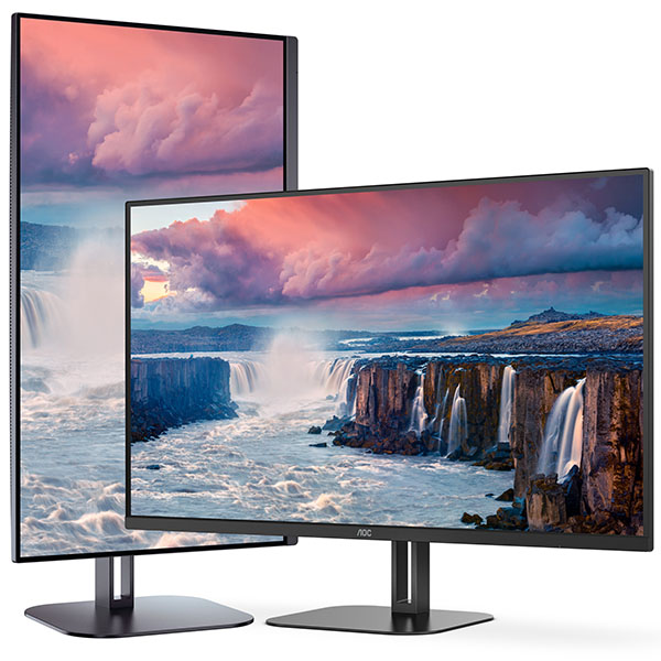Nový 27-palcový monitor AOC Q27V5C je cielený do kancelárie alebo pre domácich používateľov, ktorí hľadajú monitor na bežné použitie k PC alebo k notebooku. Ponúka rozlíšenie QHD, teda 2560 × 1440 pixelov, optimálne na uhlopriečku 27", minimalistický dizajn s tenkými rámčekmi zhora a zo strán a jednoduchý štvorcový podstavec z tenkého plechu, ktorý takmer splýva so stolom.