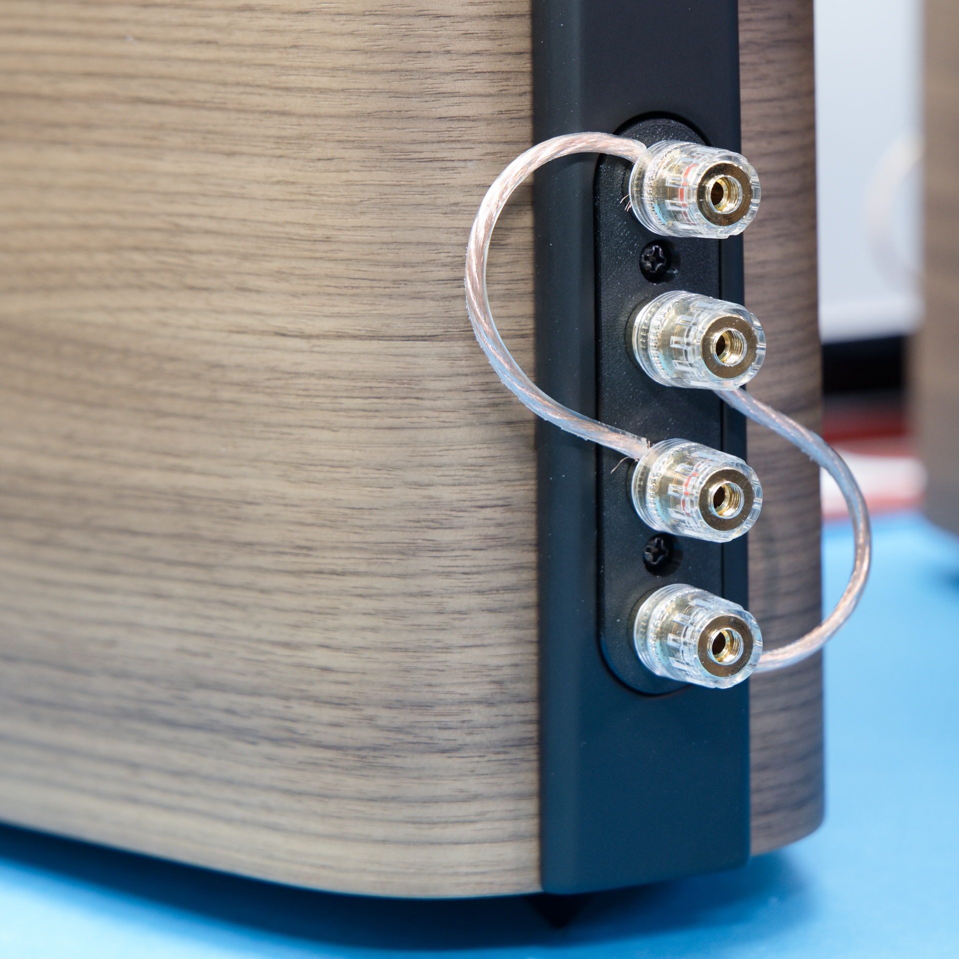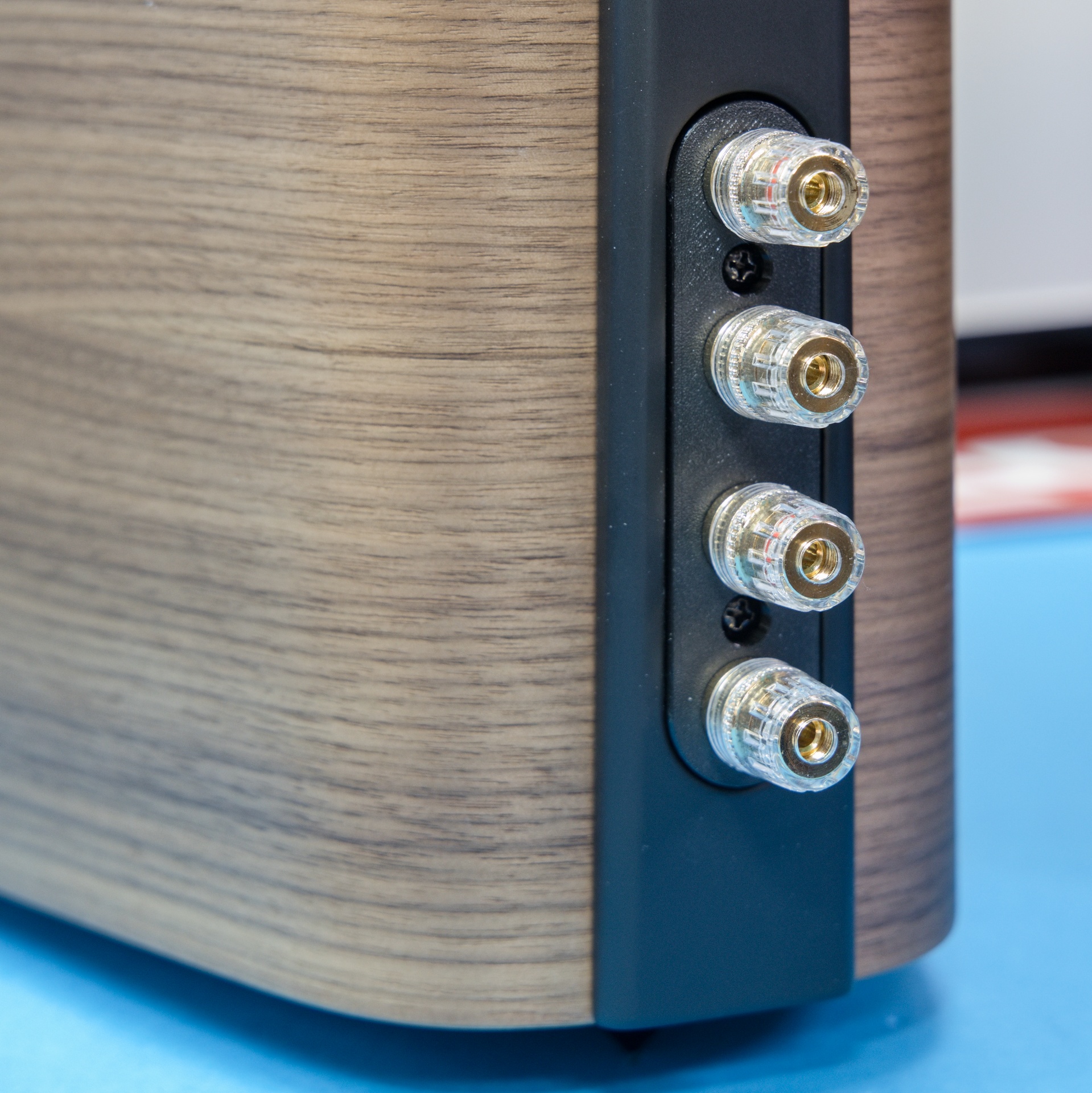 Dizajnu, presnejšie úzkej zadnej stene je prispôsobený aj pripojovací terminál. Má dva páry svoriek, umiestnené pod sebou v jednej línii. Jeden pár svoriek privádza signál k výhybke pre stredobasový reproduktor a druhý k výhybke pre výškový reproduktor. To umožňuje pripojenie reprosústav k zosilňovaču metódou Bi-wiring, čiže dvomi pármi vodičov, prípadne pri zapojení bi-amping využiť pre výšky a stredy s basmi samostatné koncové zosilňovače.