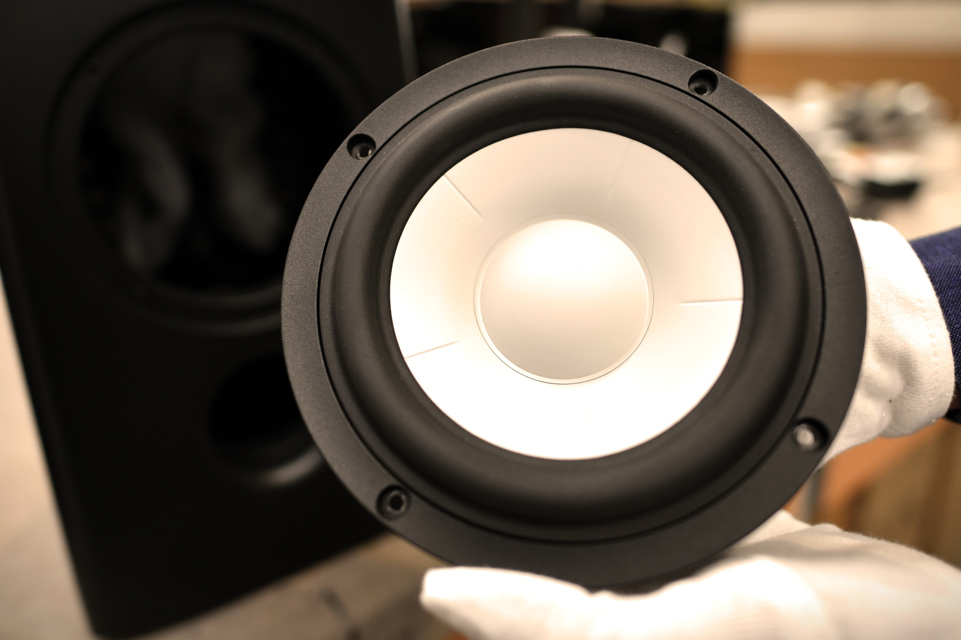 Takéto kompozitná membrána navyše vystužená 3D prelismi má vysokú tuhosť, čo eliminuje skreslenie spôsobené deformáciou bežných membrán. Kôš meniča je z pevného odlievaného hliníka. Výškový menič má textilnú kalotovú membránu s priemerom 1” v hliníkovej tvarovanej konštrukcii. Takto zladený tandem akustických meničov má verný plastický a dynamický zvuk. Basreflexový otvor v spodnej časti je nasmerovaný dopredu.