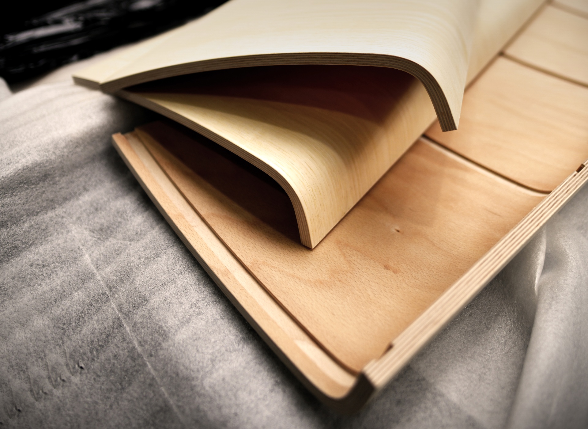 Pohľad zospodu ukazuje krivky aj štruktúru tvarovanej preglejky
