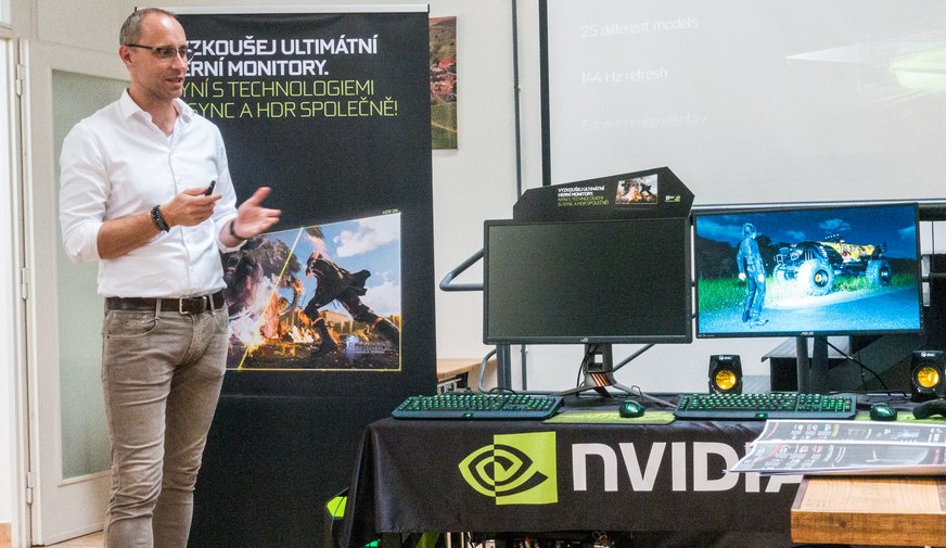 Technický produktový manažér NVIDIA pre EMEA, Igor Stanek, na ukážkach z hry Final Fantasy ukázal rozdiel medzi možnosťami klasického, aj keď veľmi kvalitného SDR (Standard Dynamic Range) monitora a G-SYNC HDR monitora, pričom obidva monitory mali rovnaké 4K rozlíšenie.