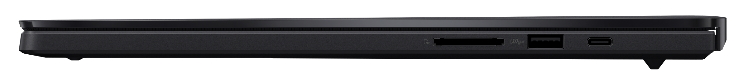Infračervená kamera ASUS AiSense dokáže zistiť prítomnosť používateľa, takže ak sa od notebooku vzdialite, zamkne sa a zníži sa jas displeja. Bohatá je aj konektorová výbava vrátane portu HDMI 2.1 plnej veľkosti, ktorý podporuje 8K/60 Hz s podporou DSC, portov USB 4 Type-C, ktoré podporujú až 100 W Power Delivery na nabíjanie a šírku pásma až 40 Gb/s, a čítačky SD kariet. Notebook podporuje najnovší štandard Wi-Fi 7.