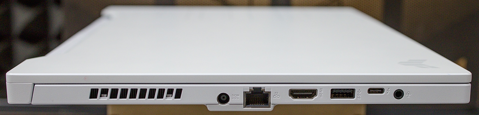 Väčšina portov je na ľavej strane, na pravej strane sú dva porty USB-A, do jedného si určite pripojíte hernú myš. Najuniverzálnejší je port USB-C s podporou USB 4.0 a Thunderbolt 4 a Power Delivery s maximálnym príkonom 100 W. Samozrejmosť je podpora najnovšieho štandardu Wi-Fi 6. Herný notebook sa pri maximálnom výkone cez port USB-C napájať nedá, potrebuje vyšší príkon – v balení je 200 W napájací zdroj. Výdrž na batériu je pri sledovaní videa viac než 9 hodín, pri hraní klesne približne na hodinu.
