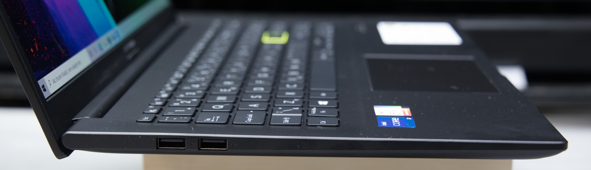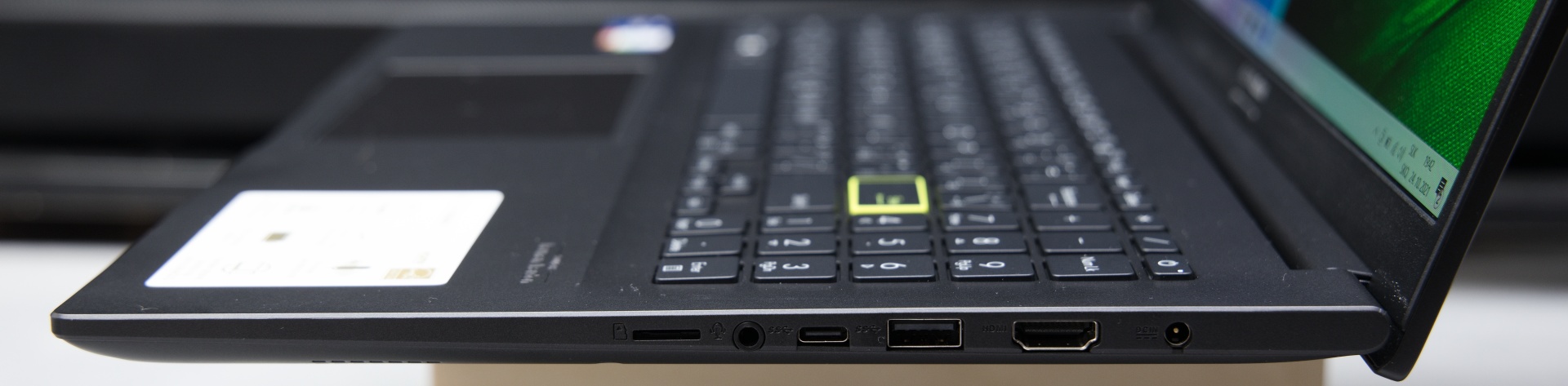 Presné typové označenie recenzovaného ultrabooku je K513EA-OLED386T vo farebnej verzii Indie Black. V ponuke je aj farebný variant Transparent Silver. Kovové veko zvyšuje tuhosť v zatvorenom aj otvorenom stave. Zvyšok tela je z kvaliného plastu, čo umožnilo dosiahnuť hmotnosť len1,8 kg. Potenciálnych záujemcov určite upúta OLED displej so sýtymi a žiarivými farbami a dizajnová upútavka na klávesnici v podobe elegantného zeleného orámovania klávesu Enter. Pri otváraní notebooku pocítite, že kĺb ErgoLift trochu nadvihne zadnú časť spodnej stenu od podložky, čím sa zaistí lepší prístup chladiaceho vzduchu dovnútra. Zároveň sa na takto mierne šikmo nadvihnutej klávesnici ergonomickejšie píše.