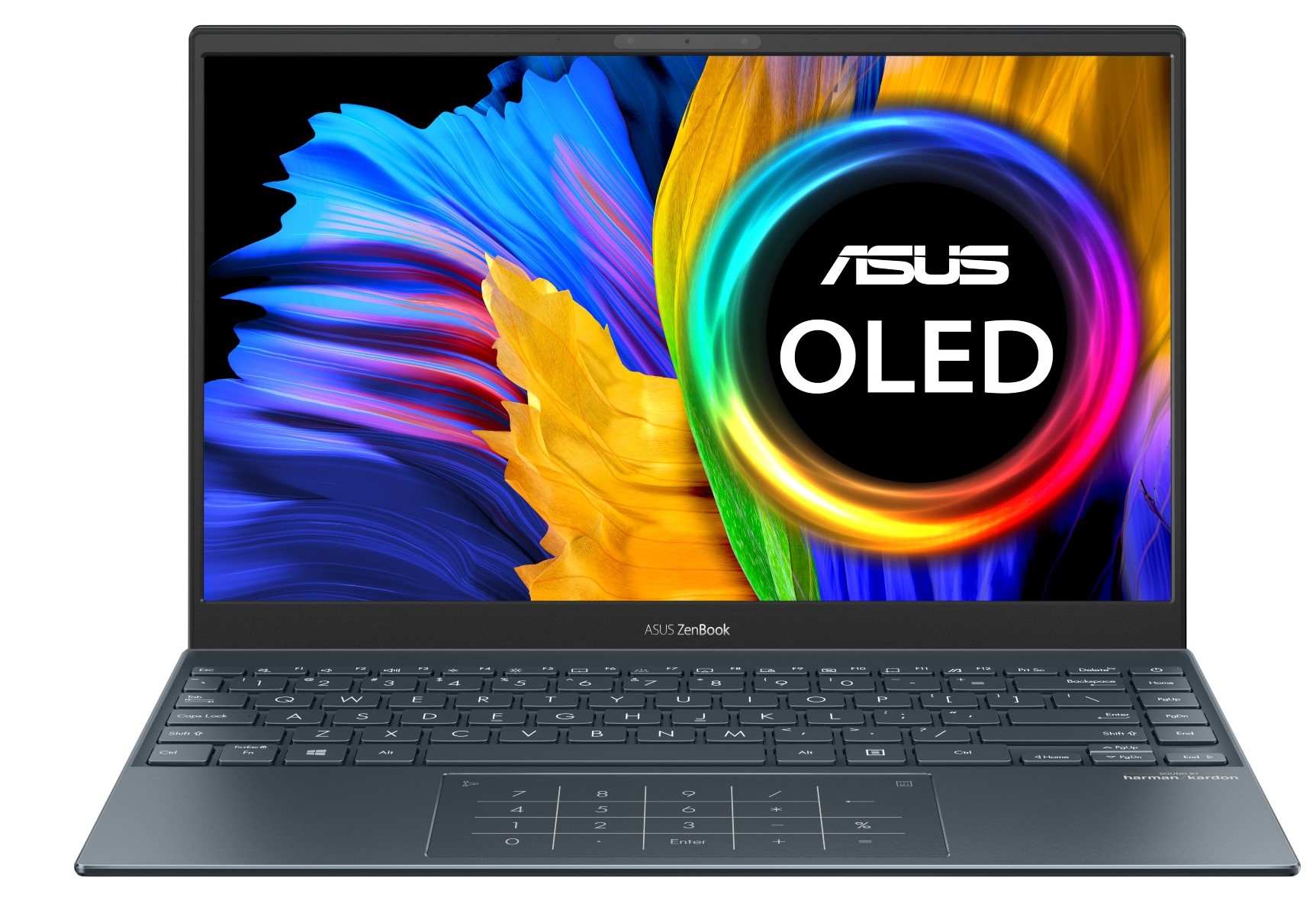 Dominantou ultrabooku je jednoznačne OLED displej s uhlopriečkou 13,3 palcov a Full HD rozlíšením, pričom kľúčovou informáciou je, že zobrazovací panel je na báze OLED technológie. V praxi to znamená žiarivejšie, živšie farby a verné zobrazenie čiernej farby. Tento typ displeja dokáže vypínať a aktivovať každý pixel individuálne, čím sa dosahuje extrémny kontrast 1 000 000 : 1. OLED displeje vďaka tomu dosahujú maximálnu svietivosť až 500 nitov v úplne rozsvietenom pixeli a 0,0005 nitu v zhasnutom pixeli. OLED displej prináša aj benefity, čo sa týka potlačenia modrej zložky farebného spektra, respektíve posun modrej zložky, ktorá má u bežných displejov vlnovú dĺžku 415 - 450 nm na vlnovú dĺžku 460 nm. Táto vlnová dĺžka je priaznivejšia, čo sa týka vplyvu sietnicu oka pri dlhšom používaní a taktiež na kvalitu spánku, ak notebook používate večer pred spaním. ASUS uvádza, že sa mu podarilo dosiahnuť redukciu škodlivej modrej zložky svetla až o 70 %. Navyše posunutie spektra na 460 nm na rozdiel od softvérových filtrov nespôsobuje skreslenie farieb.