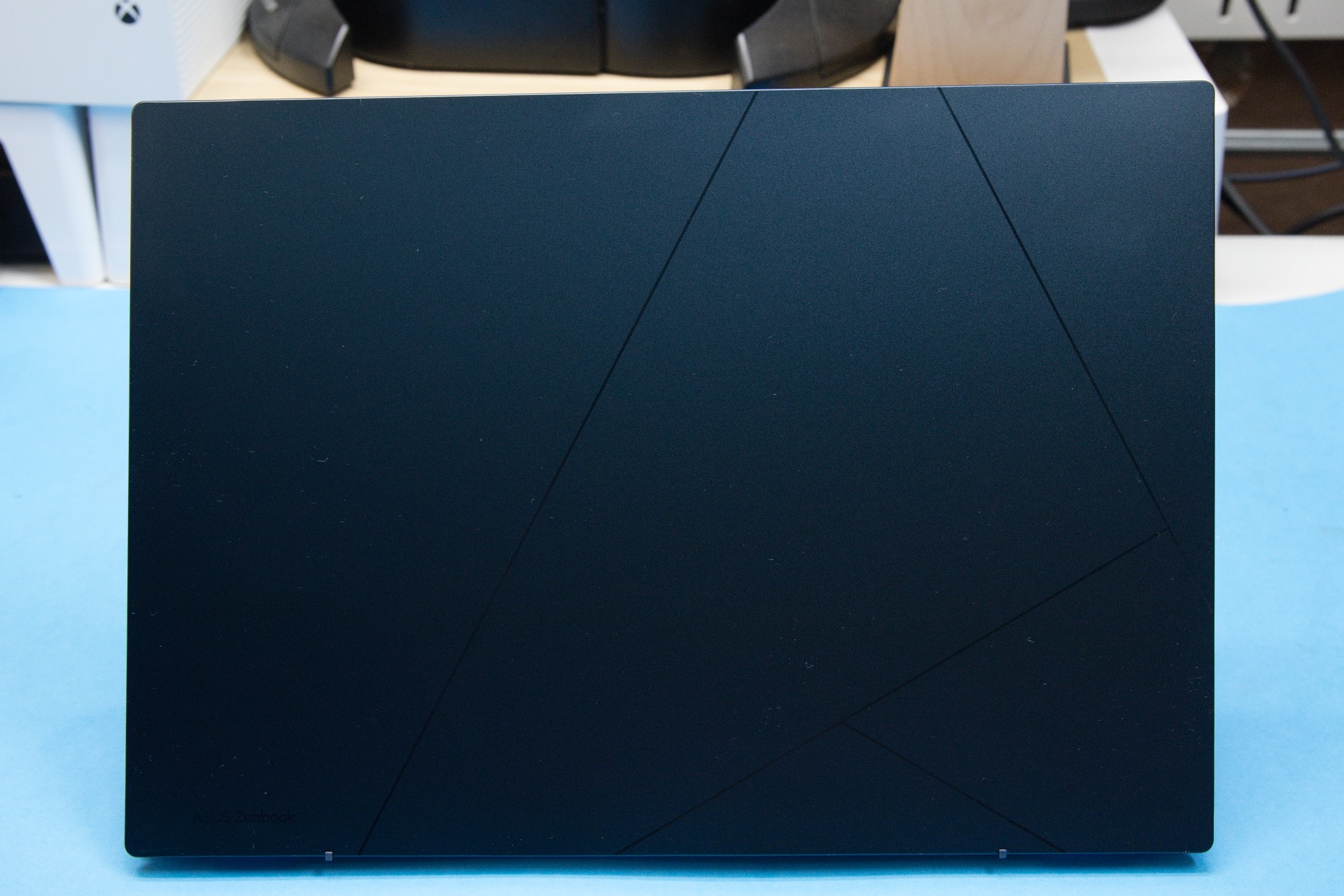 Na testovanie som mal k dispozícii tmavomodrý model marketingovo označený Celadon Blue. Dizajnéri upustili od pre Zenbook typické sústredné kruhy na veku displeja a nahradili ho štýlovým celoplošným áčkom vykresleným tenkými čiarami a malým logom ASUS Zenbook v dolnom rohu.