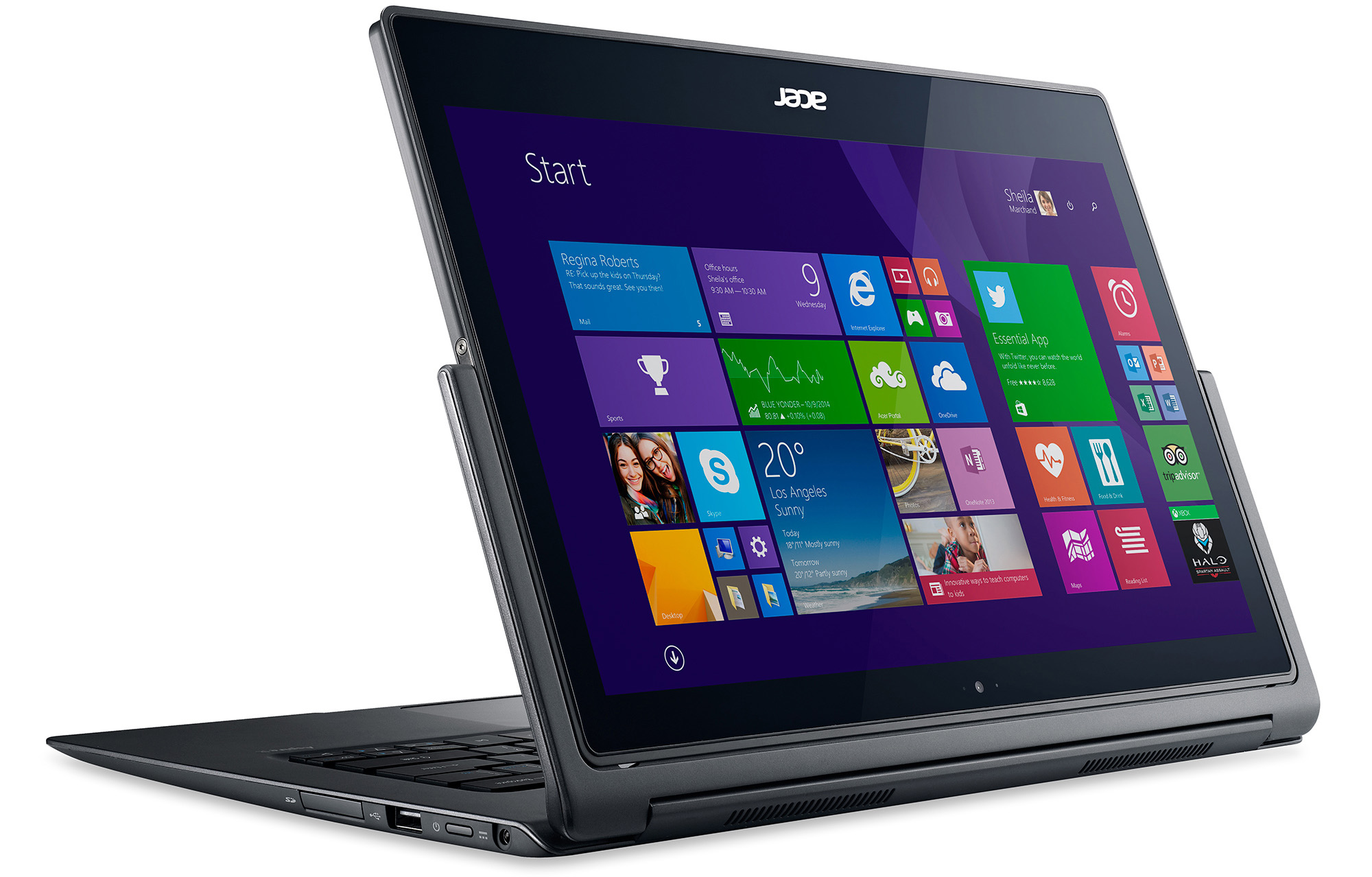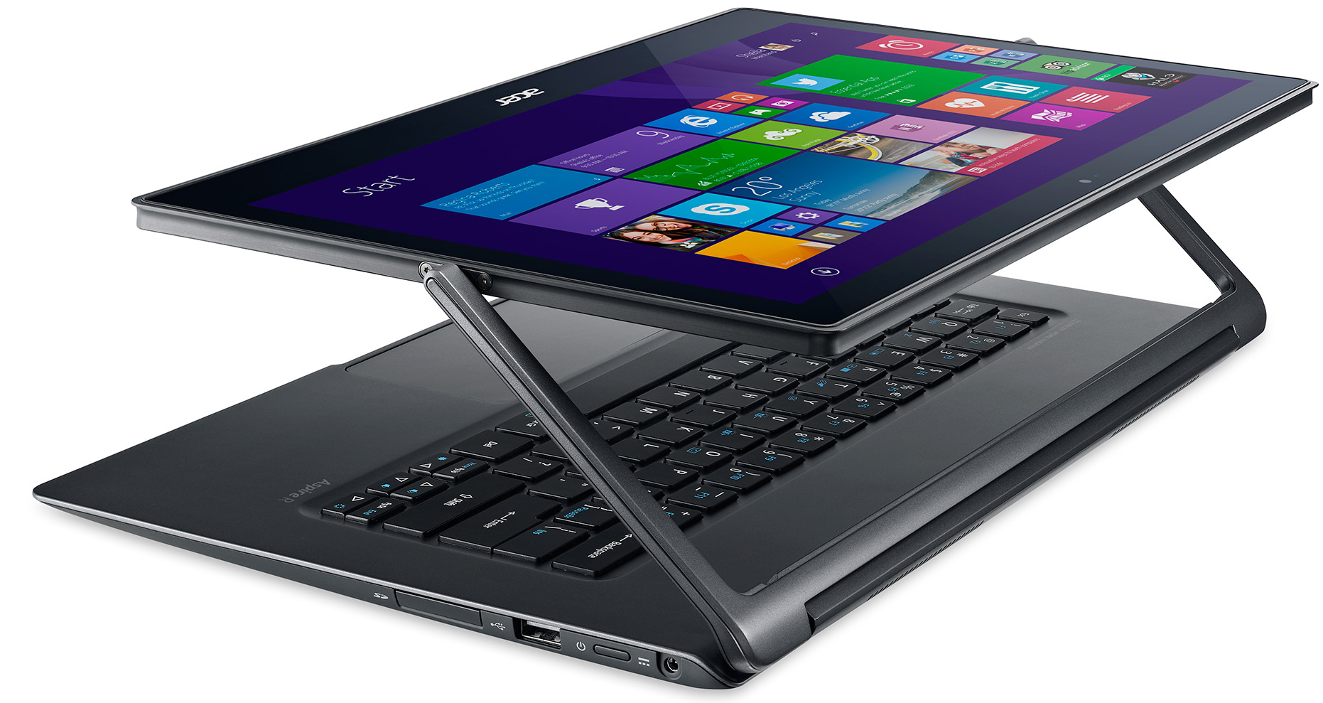 Snaha uspokojiť jedným prístrojom priaznivcov ultrabookov aj tabletov viedla k rôznym viac alebo menej úspešným konštrukciám konvertibilných zariadení s rôznou mierou variability. Výsledky viacerých prieskumov dokazujú, že málokto rozpája dvojdielne konvertibilné zariadenia, obzvlášť ak je spojenie mechanické, a nie magnetické. Oveľa viac sa možnosť zmeny formy využíva pri prístrojoch s rôznou konštrukciou preklápacieho displeja. Výhodou riešenia Acer je prakticky neobmedzená variabilita. Panel displeja je otočne umiestnený v tenkom, ale pevnom kovovom ráme tvaru hranatého U. Dômyselná konštrukcia zaručuje, že si určite nájdete vhodné usporiadanie na prácu v akýchkoľvek podmienkach, napríklad v stiesnených priestoroch ekonomickej triedy v lietadle a podobne, kde sa klasický notebook nedá otvoriť do požadovaného uhla na aspoň trochu komfortnú prácu. Po sklopení do režimu tablet môžete zariadenie vďaka malým rozmerom použiť aj počas vzletu a pristávania. Patentovaná technológia Ezel Aero Hinge umožňuje plynulý prechod medzi šiestimi rôznymi používateľskými režimami. Najzaujímavejšia je poloha Ezel, ktorá sa dosiahne naklopením displeja v ráme. Postupným naklápaním sa cez polohu Stand dostanete do režimu Tablet. Zaujímavá medzipoloha je aj displej rovnobežný s klávesnicou, vysunutý o výšku rámu.