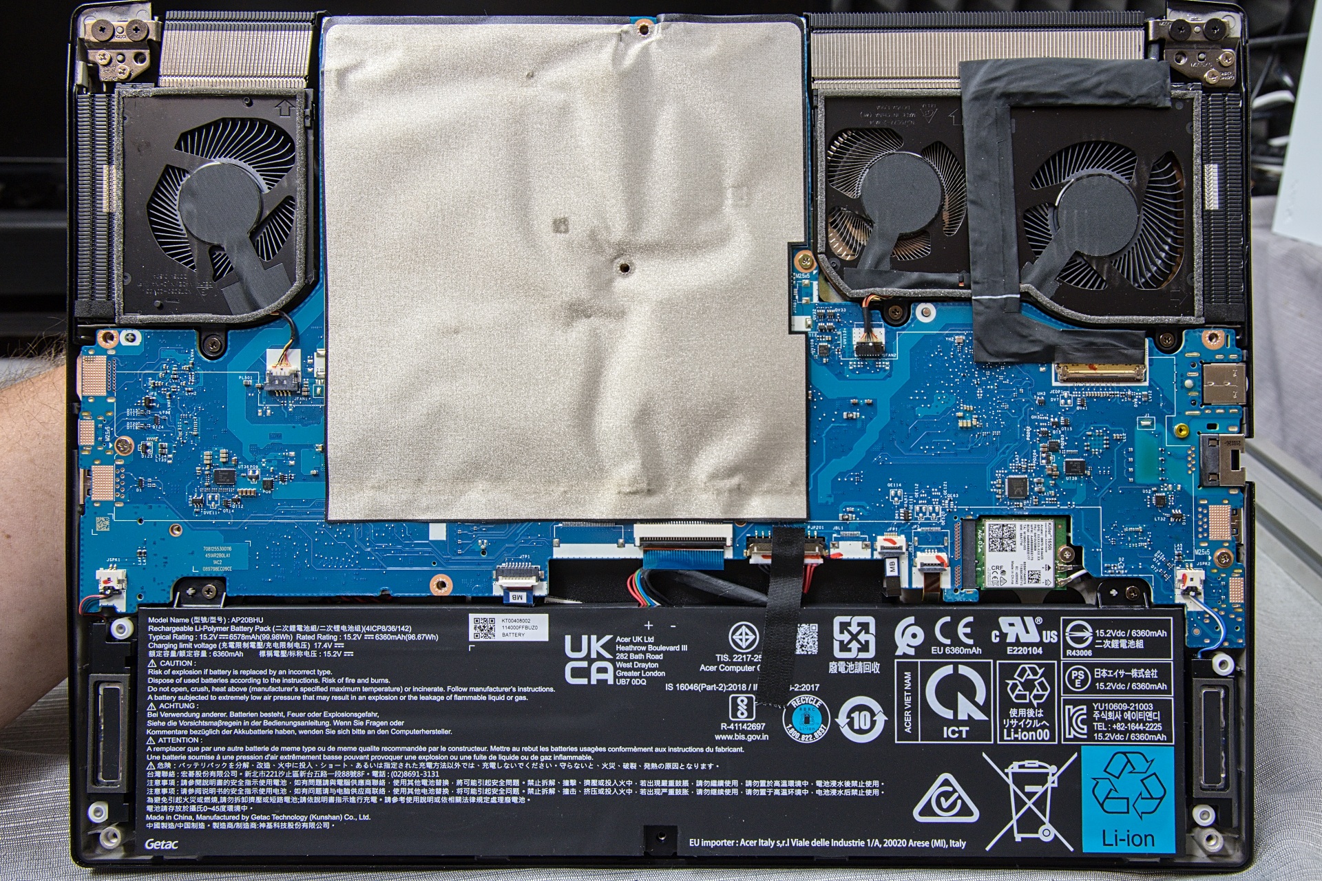 Osemjadrový procesor Intel Core i7-11800H 11-tej generácie Tiger Lake je pri bežnej záťaži taktovaný na 2,4 GHz, avšak rozsah pracovnej frekvencie je od 1,9 až do 4,6 GHz. Je to síce procesor určený do mobilných zariadení, avšak parameter TDP (Thermal Design Power) 35 W s možnosťou krátkodobého zvýšenia na 45 W svedčí o vysokom výkone, samozrejme iba vtedy ak chladiaci systém notebooku dokáže vzniknuté teplo odviesť. Testovaný model mal k dispozícii 16 GB RAM. Grafické aplikácie napríklad od Adobe, čí návrhové aplikácie trebárs od AutoDesku a taktiež hry budú využívať výkon dedikovaného grafického čipu NVIDIA GeForce RTX 3060 s architektúrou Ampere. K dispozícii je 6 GB grafickej pamäti GDDR6. TDP grafického čipu RTX 3060 sa pohybuje od 80 W do 115 W pri aplikovaní Dynamic Boost. Pribalený zdroj je schopný dodať príkon 230 W