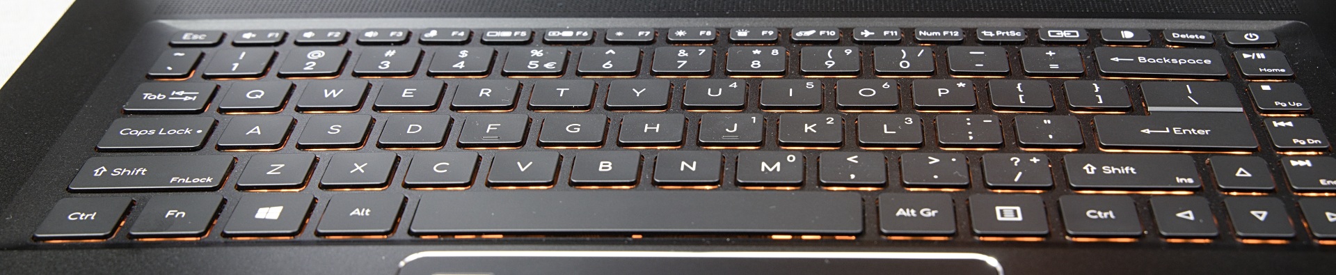 Klávesnica nemá numerickú časť, grafici dizajnéri a konštruktéri predsa len viac pracujú s 2D a 3D objektmi, než s číslami. Samozrejmosťou je podsvietenie v tomto prípade príjemným oranžovým odtieňom svetla.