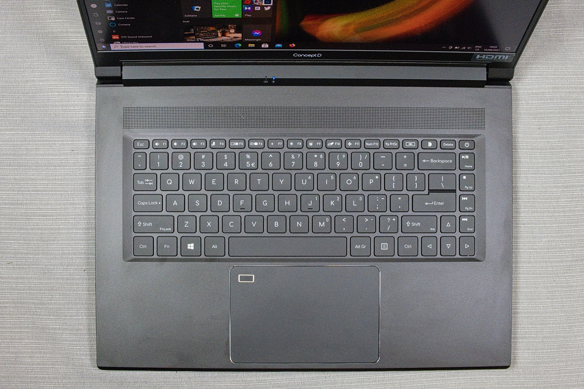 Klávesy majú príjemnú odozvu s progresívnym znížením pružného odporu približne v 2/3 dráhy, takže písanie je rýchle a presné. Veľký touchpad má povrch chránený odolným sklom Corning Gorilla Glass, pravdepodobne s oleofóbnou úpravou, takže vaše gestá budú presné. V ľavom hornom rohu touchpadu je rámikom vyznačená plocha čítačky odtlačkov prstov, ktorá je rýchla a presná a samozrejmosťou je podpora technológie Windows Hello. Táto plocha nefunguje ako touchpad, ale nakoľko je ohraničená rámikom, nebudete tam pri ovládaní kurzora, či gestách prstom zachádzať.