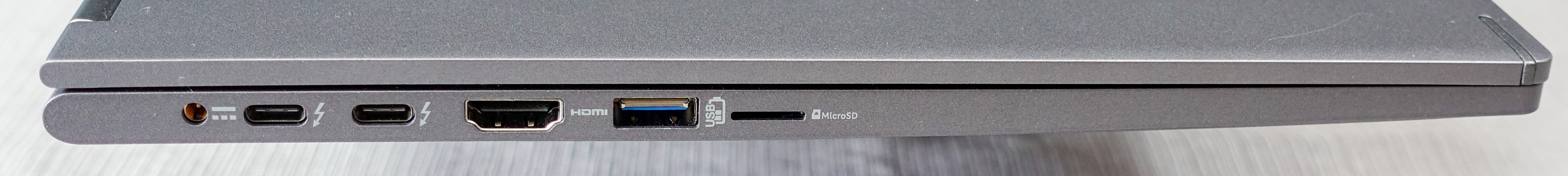 Konektivita je v tejto triede nadštandard, používateľ má k dispozícii dva porty USB-C s podporou technológie Thunderbolt 3 a dva klasické porty USB 3.2, a taktiež konektory HDMI a Jack 3,5 mm. Slot na pamäťové karty je vo veľkosti „micro“