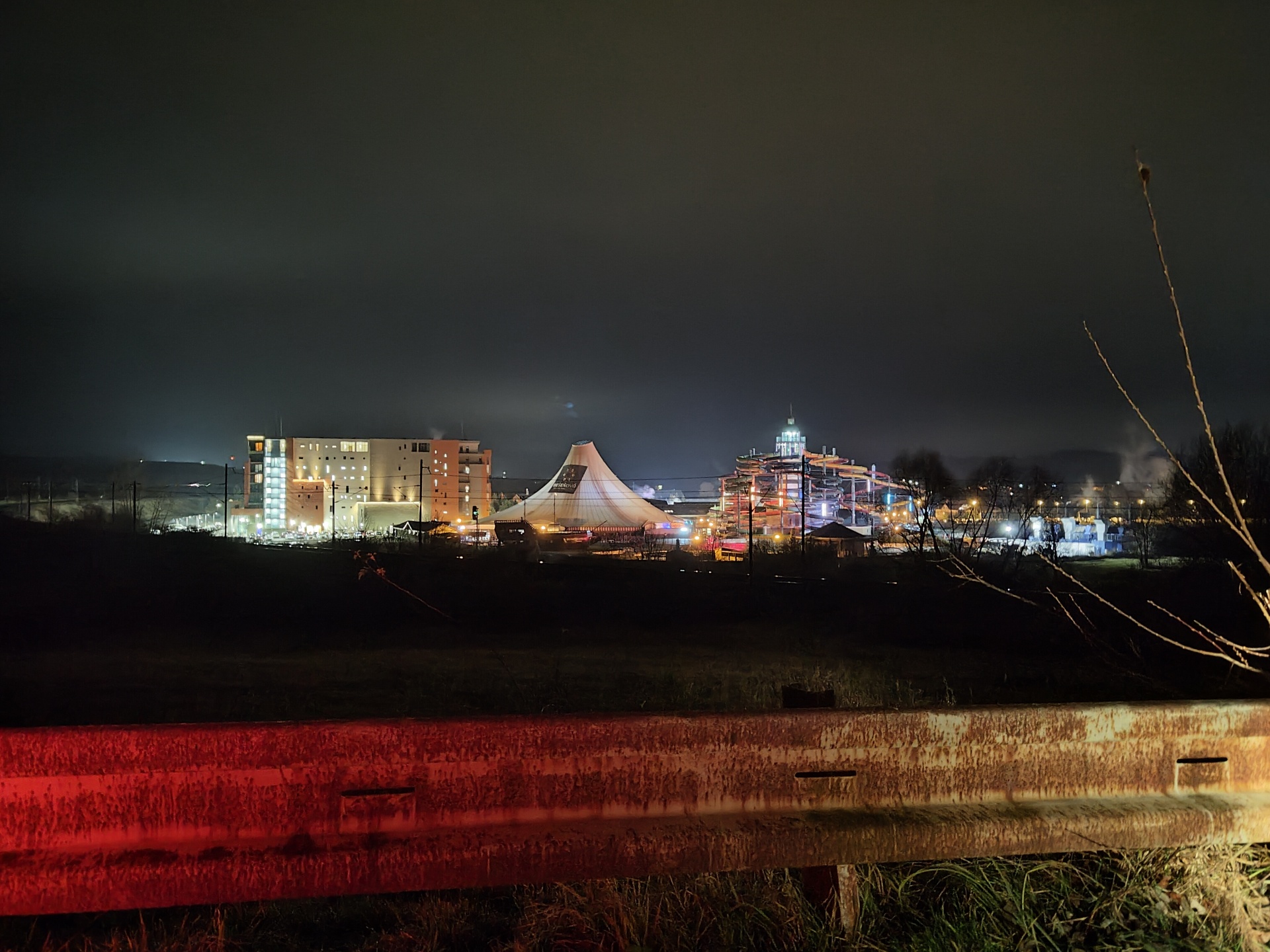 Záber hlavným objektívom, Aby popredie nebolo prázdne pomohol som si osvetlením hrdzavého zábradlia svetlami auta