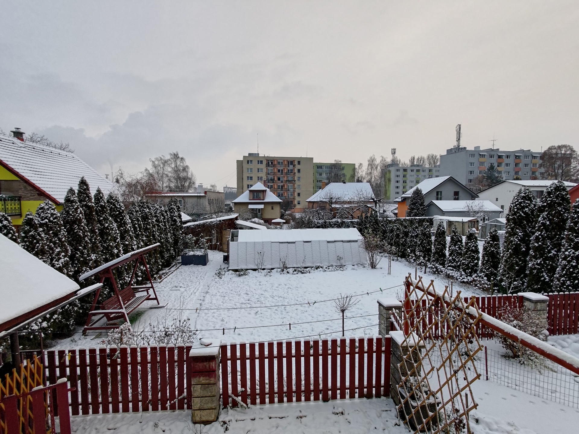 Záber hlavným a ultraširokouhlým fotoaparátom. Zábery verne vystihujú atmosféru zimného zamračeného dňa,