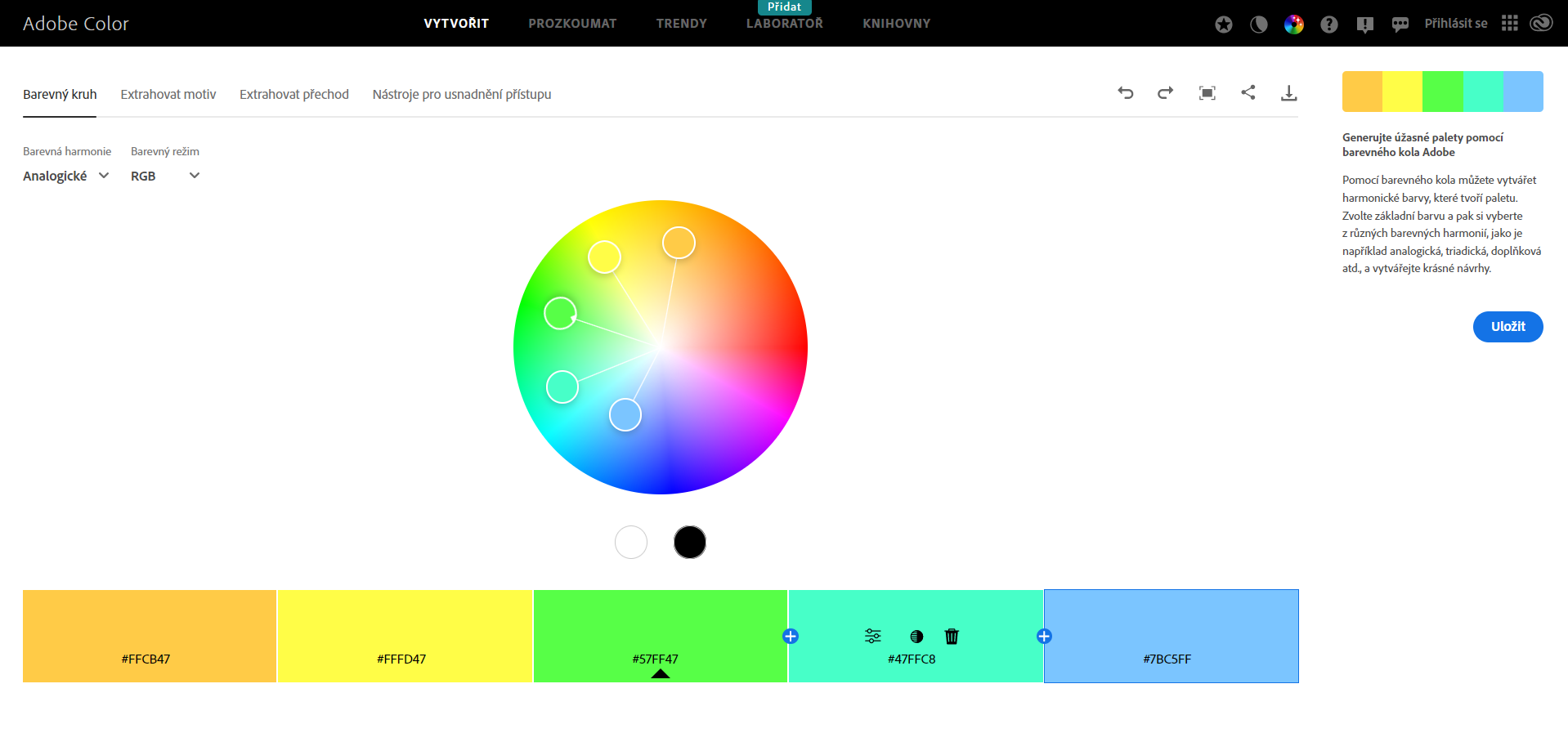 » Výber analogických farieb pomocou webového nástroja Adobe Color