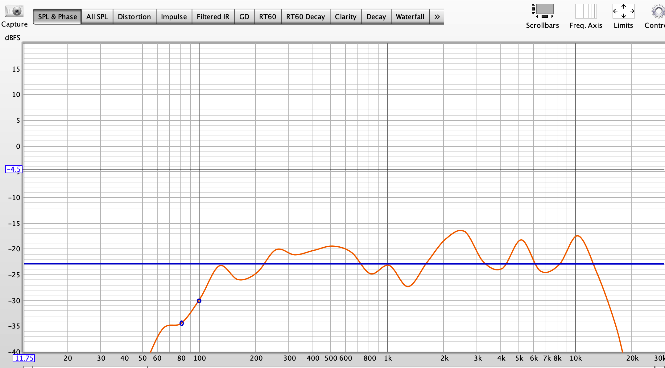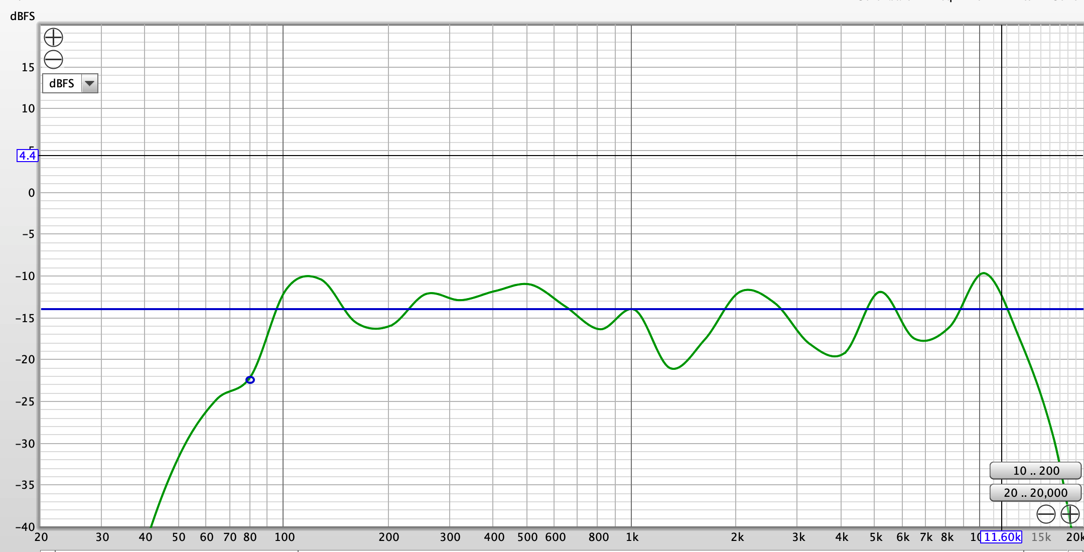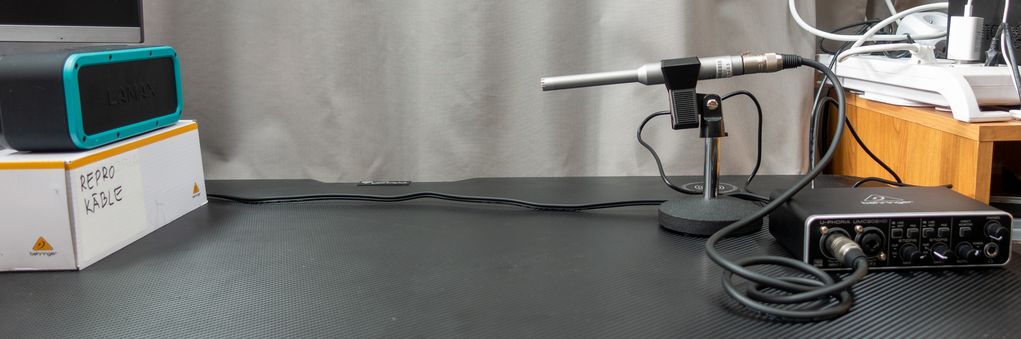 Meranie frekvenčnej charakteristiky v improvizovaných podmienkach v bežnej miestnosti a vzdialenosti meracieho mikrofónu (Behringer UMC 8000) 0.5 m. Pri meraní bol použitý externý zvukový modul Behringer UMC 202 a celá sústava bola kalibrovaná.