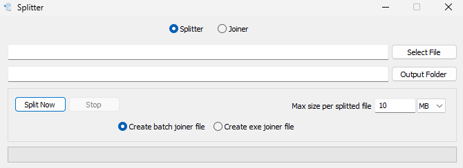 V prípade, že posielate rozdelený súbor niekomu, kto nemá práva na prijímanie alebo spúšťanie programových súborov EXE, môžete namiesto toho zvoliť možnosť vytvorenia zlučovateľského dávkového súboru s príponou BAT, na ktorý na zlúčenie stačí kliknúť.