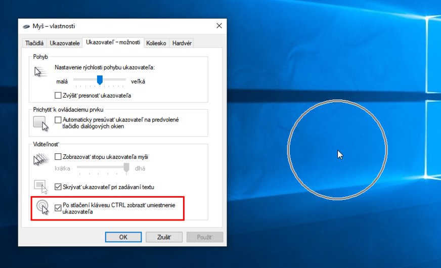 Našťastie Windows obsahuje pre tieto prípady jednu malú a pritom veľmi užitočnú vizuálnu pomôcku. Stlačením klávesu CTRL môžete okolo kurzora zobraziť veľký a jasný kruh, ktorý poľahky zbadáte, a tak kurzor na displejoch rýchlo nájdete.