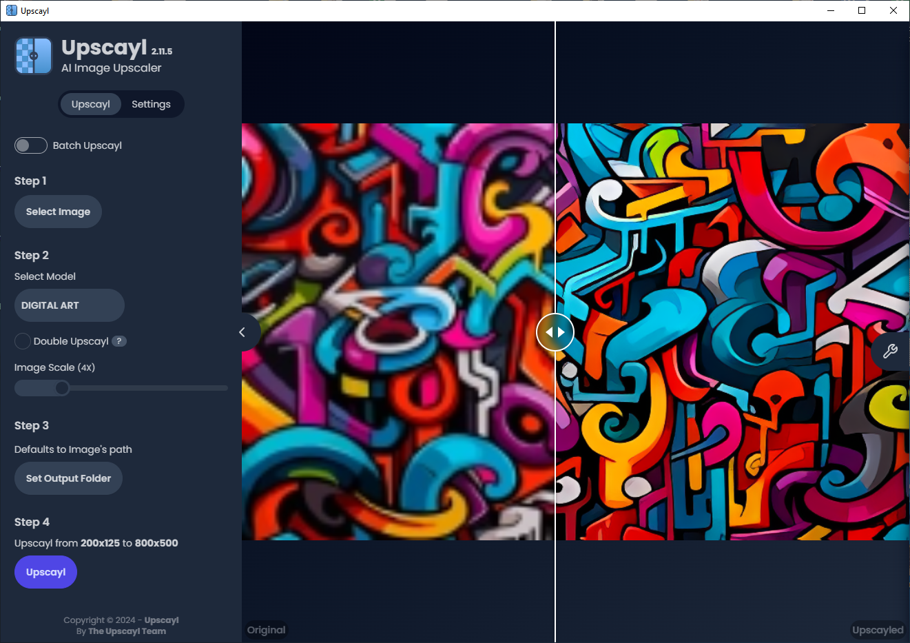 Ide o bezplatný a slobodný softvér s otvoreným zdrojovým kódom, ktorý je dostupný na stiahnutie na stránke www.upscayl.org a v prípade, že by ste sa chceli zapojiť do jeho vývoja, nájdete ho aj na vývojárskej platforme GitHub (https://github.com/upscayl/upscayl).