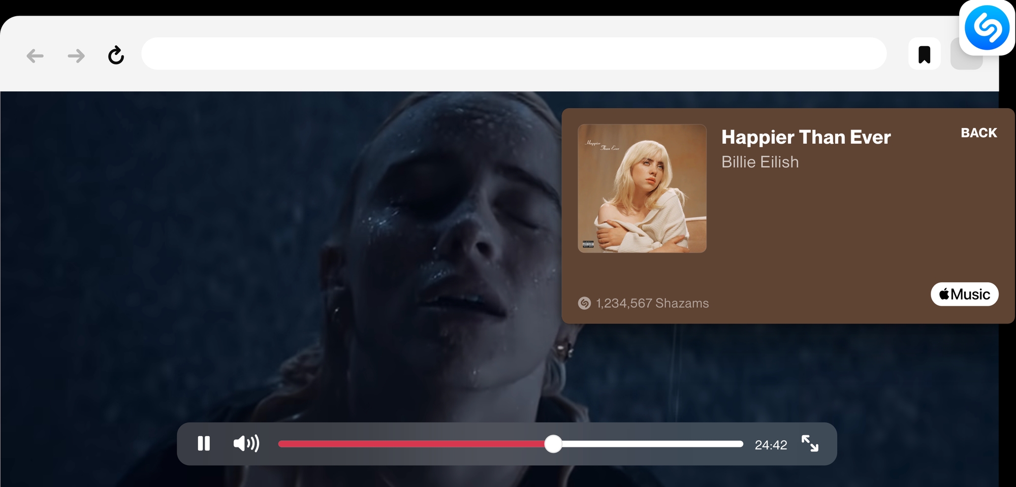 Doplnky v prehliadači fungujú ako tlačidlo na ich hornom paneli, ktoré môžete stlačiť kedykoľvek, keď na nejakej stránke počujete hudbu. Môžete tak rozpoznať jej názov a interpreta.