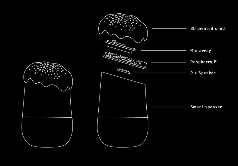 Keď Alias zachytí inicializačnú frázu na vlastné prebudenie, prestane vysielať biely šum a prebudí funkciu Alexa alebo Asistent Google, aby ste ich mohli používať ako bežne. Alias je navrhnutý tak, aby sa dal umiestniť na vrchol reproduktora Amazon Echo či Google Home, a vyzerá ako roztavený vosk zo sviečky. Skladá sa z vrchnej vrstvy vytvorenej 3D tlačou, mikrofónu, Raspberry Pi a dvoch reproduktorov.