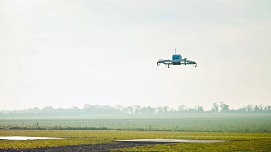 Internetový predajca Amazon uskutočnil svoju prvú dodávku tovaru dronom vo Veľkej Británii. Balík dorazil na miesto určenia v Cambridgei 13 minút po objednaní. O jeho doručenie sa postaral elektrický dron letiaci vo výške 122 metrov.