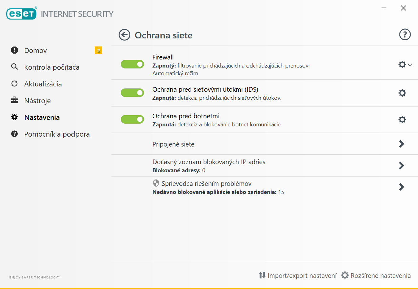 Internet sa už dávnejšie stal dominantným zdrojom hrozieb pre domácich používateľov, takže je logické, že spoločnosť ESET, slovenský dodávateľ populárneho a celosvetovo rozšíreného antimalvérového riešenia, priniesla na trh nový produkt ESET Internet Security, ktorý nahrádza ESET Smart Security. Pri produkte pre domácich používateľov je žiaduca jednoduchá inštalácia, no z hľadiska správneho fungovania každého bezpečnostného riešenia je dôležité, aby zároveň neboli nainštalované iné antivírusové a bezpečnostné aplikácie. Preto by ich používatelia mali odinštalovať pred začiatkom inštalácie. Netreba však odinštalovať Defender ani vypnúť firewall systému Windows, pretože to automaticky zabezpečí inštalátor produktu ESET Internet Security. V praxi to funguje tak, že si stiahnete krátky inštalačný súbor aplikácie, ktorá vyhľadá potenciálne konfliktné aplikácie a po vyriešení situácie, napríklad tak, že odinštalujete iný antimalvérový program, potom nainštaluje zvyšok.