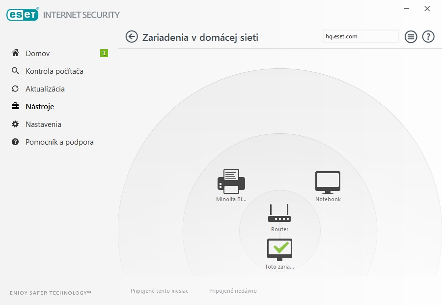 Router a zariadenia k nemu pripojené sa testujú na prípadné zraniteľnosti, ako sú napríklad slabé alebo dokonca implicitné heslo alebo neaktuálny firmvér, a ponúka jedným kliknutím prístupné rady, ako riešiť problémy nájdené nielen v routeri, ale aj v pripojených zariadeniach. Aby bolo možné sieť chrániť, najskôr treba spoznať jej konfiguráciu. Ochrana domácej siete je z technického pohľadu cloudová služba, ktorá umožňuje otestovať domáci router na rôzne zraniteľnosti. Poskytuje zoznam aktuálne pripojených zariadení, používateľ ich môže pre lepšiu prehľadnosť zaradiť do rôznych kategórií. Všetky spomínané informácie sa dajú zistiť aj z konfiguračných stránok routera. No ruku na srdce: koľko domácich používateľov to dokáže? Naproti tomu ESET Internet Security informácie zistené z routera zobrazuje vo forme zrozumiteľnej používateľovi. Pripomínam, že táto funkcia len deteguje a zobrazuje informácie o potenciálnych problémoch, router nekonfiguruje. To môže urobiť používateľ v súčinnosti s ESET technickou podporou, ktorej umožní diaľkový prístup do svojho počítača.