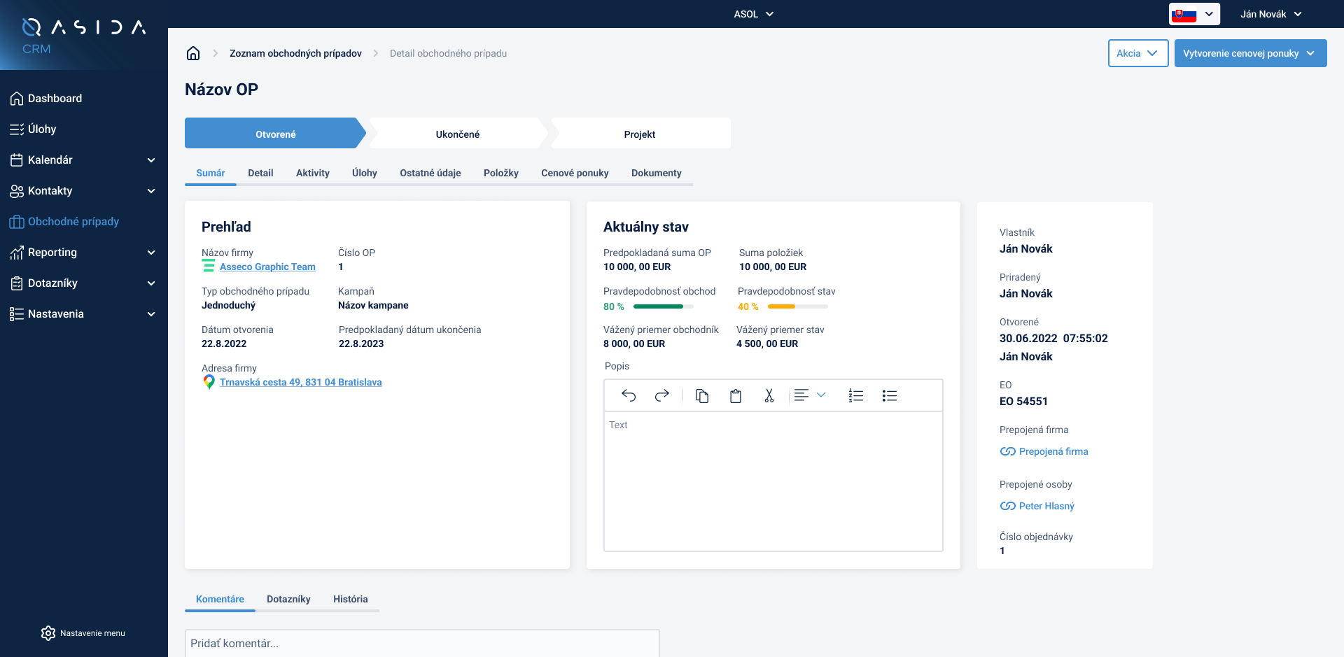 Integrácia riešenia QASIDA do IT ekosystému zákazníka je jednoduchá, k dispozícii je nástroj na prepojenie s riešeniami tretích strán, ktorý umožňuje výmenu dát s viacerými etablovanými riešeniami a platformami. Stačí definovať potrebné atribúty, číselníky, ktoré sa naozaj dajú namapovať a prepojiť medzi systémami. Napríklad ak niekto má vlastný e-shop a potrebuje si dobudovať ekonomickú časť, QASIDA sa prepojí na tento e-shop, prípadne ak má firma špecializovaný systém, vyvinutý na zákazku, možno prepojiť číselníky, kategórie produktov, cenníky a ďalšie údaje. Doba implementácie závisí od zložitosti a náročnosti procesov. Pri jednoúčelových aplikáciách, ako CRM, Service či Rental, sa čas implementácie pohybuje rádovo v dňoch. V prípade nasadenia komplexného riešenia ERP zahŕňajúceho ekonomiku, logistiku, správu majetku a podobne, teda komplexné zastrešenie firemných procesov, implementácia môže trvať mesiace podľa toho, ako je firma pripravená na prechod na nové riešenie. Doba implementácie závisí aj od kapacít, ktoré je firma schopná a ochotná poskytnúť na nasadzovanie nového riešenia. Treba mať na pamäti, že zároveň s nasadzovaním nového riešenia ERP firma potrebuje fungovať a realizovať svoj primárny biznis. Komplexnú implementáciu a následnú starostlivosť o zákazníkov Asseco rieši vlastnými kapacitami, do budúcnosti plánuje budovať a rozvíjať sieť partnerov.