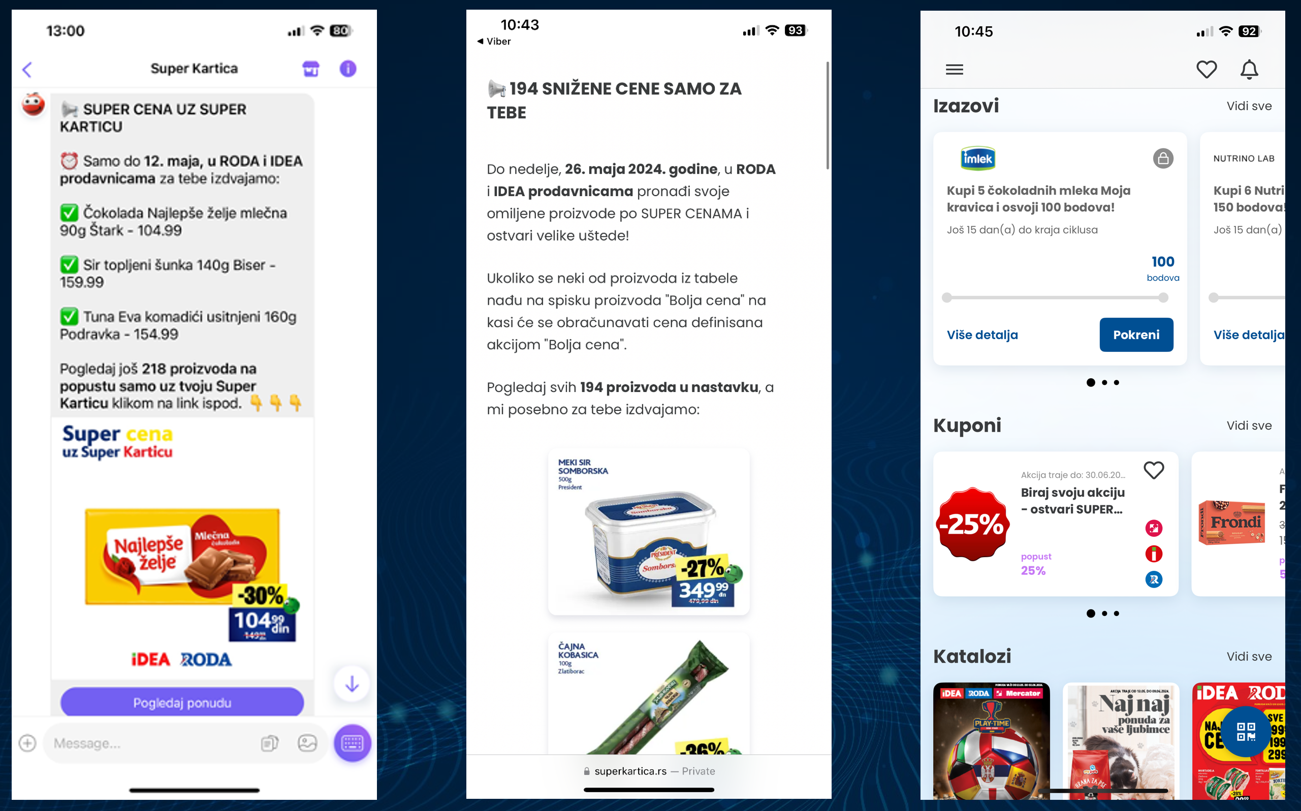 Ďalší veľmi zaujímavý systém bol nedávno implantovaný v Srbsku pre veľký obchodný reťazec, ktorý má viac než milión registrovaných zákazníkov, ktorí si nakupujú prostredníctvom online platformy. Vďaka použitiu umelej inteligencie systém dokáže urobiť personalizované ponuky pre registrovaných zákazníkov, osloviť ich viacerými kanálmi. Pomocou komunikačnej platformy im vedia posielať priamo personalizovanú ponuku s preklikom na stránku e-shopu. Týmto to ale nekončí. V e-shope AI pre daného používateľa pripraví personalizovanú stránku, pretože zasa zistilo, že zákazníci majú veľmi radi keď sú stránky portálov e-shopov personalizované. Čiže vďaka AI sa v reálnom čase dokáže vyskladať personalizovaná stránka s ponukou a odporúčaniami na základe jeho predchádzajúcich nákupov.