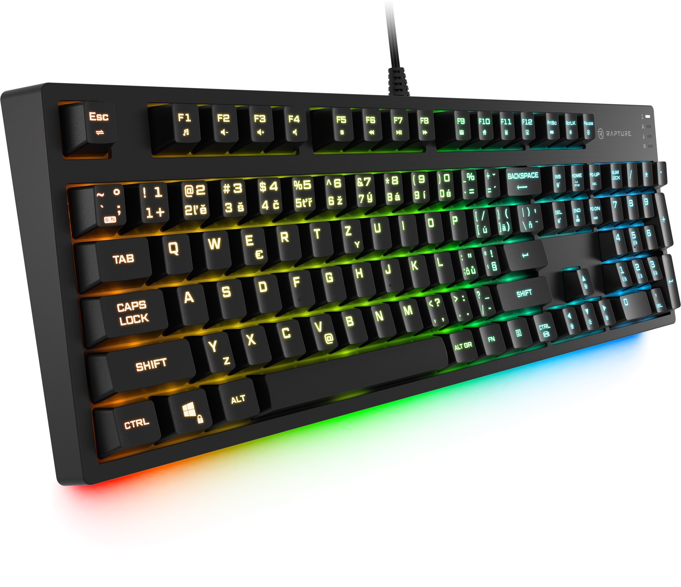 Okrem RGB podsvietenia kláves je podsvietená aj predná spodná hrana klávesnice, čo vytvára zaujímavé svetelné efekty na vhodnej podložke. Dynamické svetelné efekty môžete nastaviť nielen priamo na klávesnici, ale aj pomocou softvéru v PC. Aj táto klávesnica má zámok tlačidla Windows aj Anti Ghosting a N-Key Rollover, takže je schopná zaznamenať súčasné stlačenie viacerých kláves. Elektronika klávesnice nezávisle registruje informácie zo všetkých spínačov súčasne. Cena 86,90 €