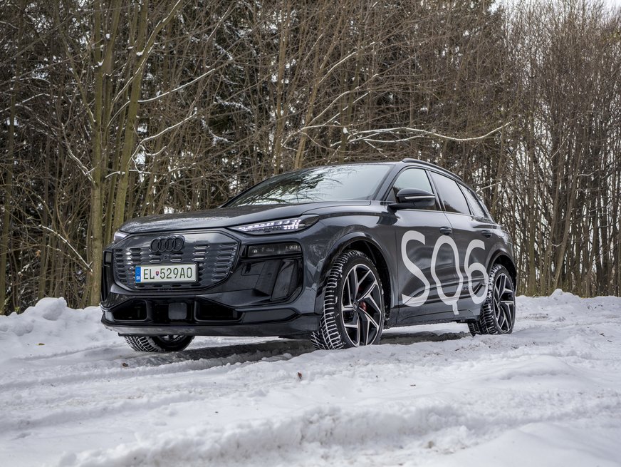 Zatiaľ čo Q6 sme testovali za letných horúčav, počas testu SQ6 sa teploty pohybovali skôr na zimnej úrovni medzi -3 °C a +10 °C. Spotreba sa tentoraz ustálila na 27,2 kWh/100 km. S ľahšou nohou po okreskách sme sa dostali na 21,5 kWh/100 km. Vzduchový podvozok je naladený športovejšie, takže nerovnosti nežehlí úplne, ale zato zabezpečuje výbornú stopu bez nakláňania aj v zákrutách. Vzhľadom na športový charakter a zrýchlenie za 4,3 s na 100 km/h (v režime Launch Control) je rozjazd nastavený oveľa ráznejšie ako na Q6. Jeden z najväčších benefitov novej platformy je novo vyvinutá 800 V technika, ktorá je odlišná od predchádzajúcej generácie e-tronov a umožňuje nabíjanie výkonom až 270 kW. V zimných podmienkach však vozidlo podľa ukazovateľa udržiavalo batériu na teplotách okolo 5 – 9 °C a táto teplota sa nemenila, ani keď bola v navigácii naplánovaná nabíjačka. Nevieme, akú má mať batéria ideálnu teplotu pred nabíjaním, isté však je, že vyšší výkon ako 175 kW sme pri zimnom nabíjaní nezaznamenali. A to sme k nabíjačke prišli po 130 km jazde. Ručne však prípravu batérie zapnúť nemožno. Nabíjanie z 10 na 80 % sme zvládli za 28 minút.