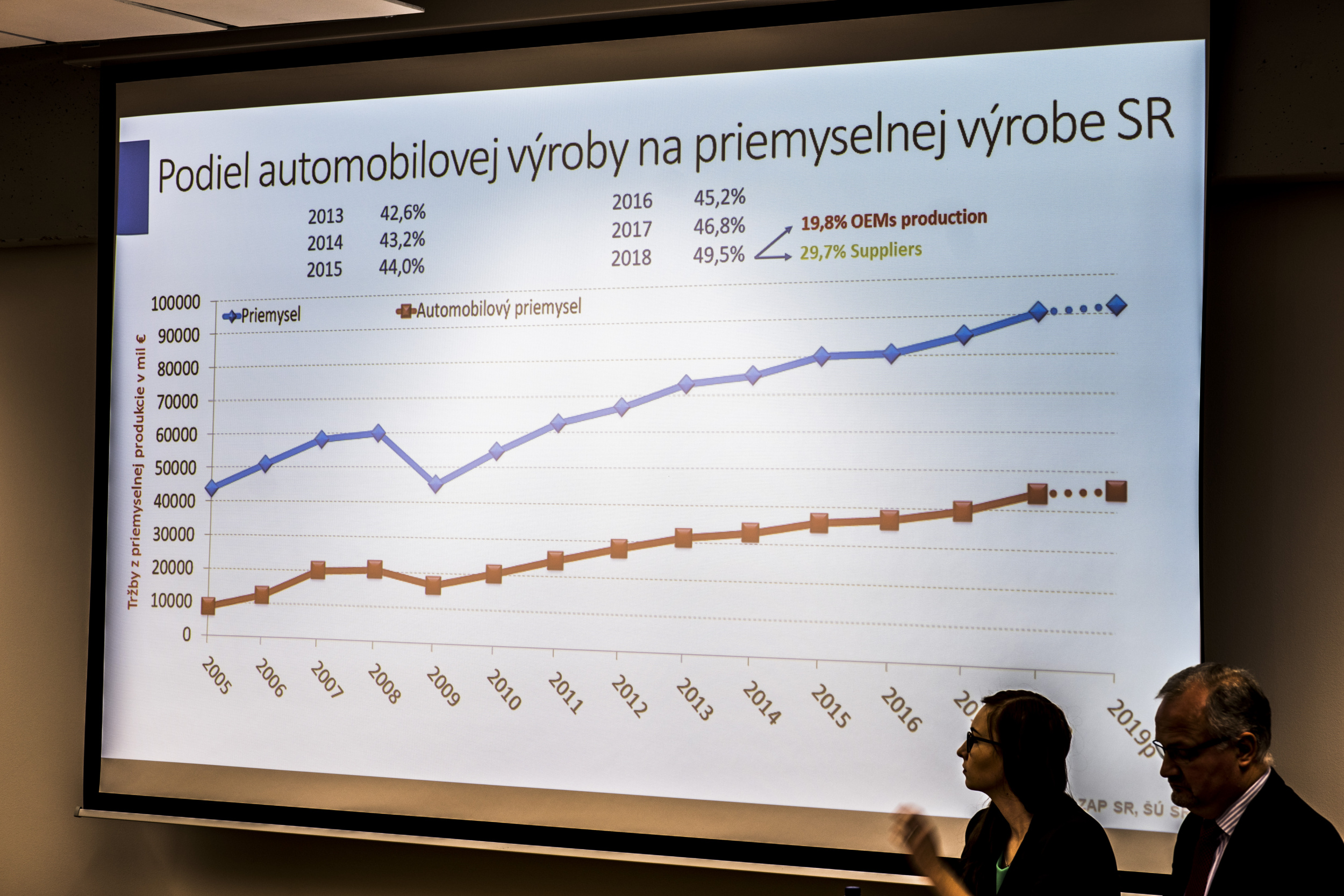 Zaujímavé je že v apríli 2019 bolo u nás vyrobené 12 000 000-te auto. Podiel automobilového priemyslu na celkovom priemysle dosiahol 49,5 percenta a podiel na exporte 46,6 percenta. V rámci automobilového priemyslu je priamo zamestnaných viac ako 177 000 osôb, a vrátane nepriamych zamestnancov je to až 275 000 pracovných miest.