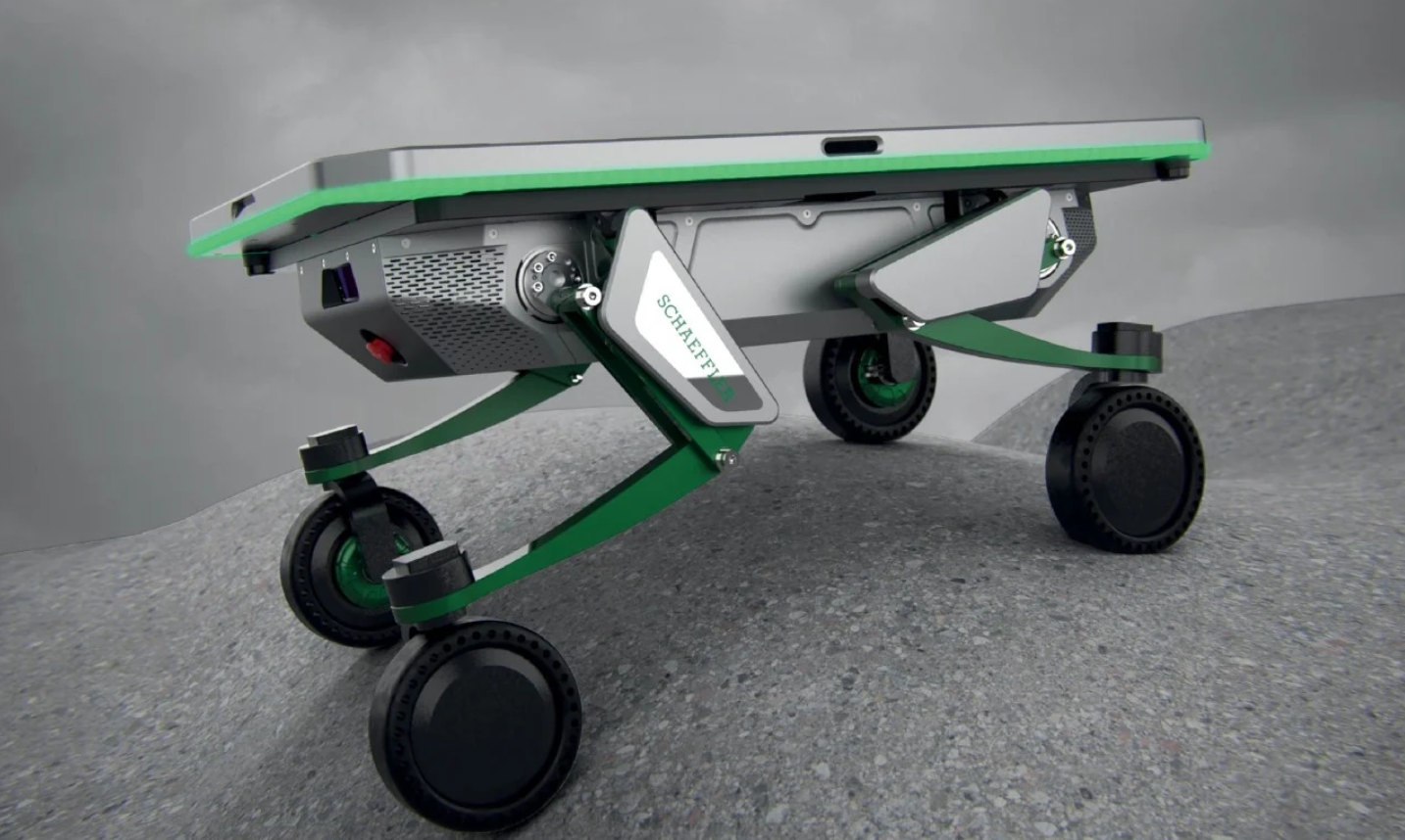 Účelový robot spoločnosti Schaeffler s názvom DEX (odvodeným od Dual EXtendable legs) je je vybavený nohami spojenými s kolesami, ktoré mu umožňujú pohybovať sa po rovných alebo nerovných povrchoch, hore a dole po rampách a dokonca vyliezť po schodoch, aby sa dostal do rôznych častí továrne. Okrem toho disponuje plošinou a množstvom senzorov bezprostredne pod ňou, takže DEX sa môže autonómne pohybovať, prevážať náklad z jedného miesta na druhé a zároveň sa ľahko vyhýbať prekážkam, ktoré sa mu dostanú do cesty.