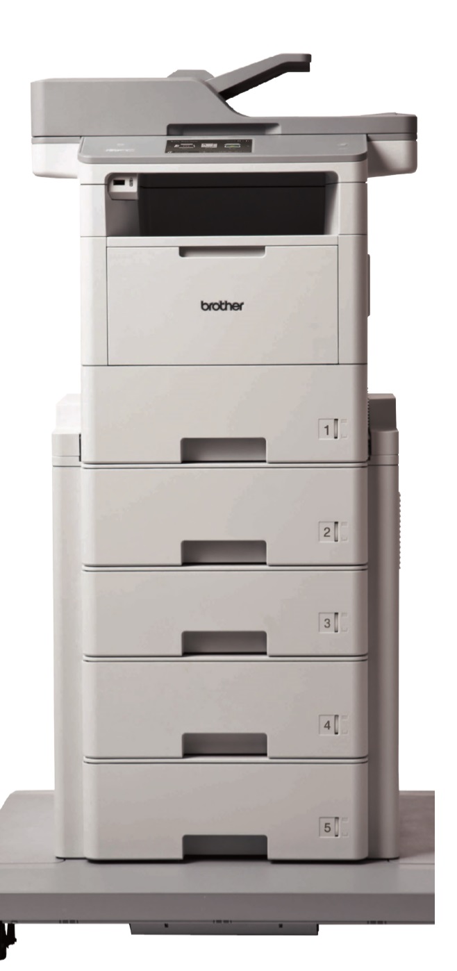 - Technológia tlače laserová čiernobiela, formát/rozlíšenie A4/1200 × 1 200 dpi, kapacita zásobníkov vstupný 520 s možnosťou rozšírenia, ADF 80, výbava duplex, ADF, USB, Wi-Fi, 12,3 cm dotykový LCD displej, rozmery 49,5 × 42,7 × 51,8 cm, hmotnosť 19 kg, spotreba 805 W, režim Pripravené 34 W, režim spánku 8 W, hlboký spánok 1,6 W, náklady (1 strana A4, toner TN-3512 na 12 000 strán, cena 121 EUR): 0,01 EUR, rýchlosť tlače obojstranná 24 str./min, jednostranná 50 str./min, rýchlosť skenovania 100 str./min obojstranne