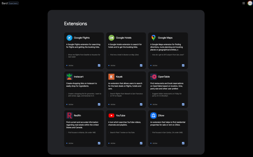 Na tento účel Google pripravil pre Bard spôsob priamej integrácie s vlastnými nástrojmi spoločnosti, ako sú Mapy Google, Google Flights a YouTube, ako aj so službami tretích strán. Bard bude tiež schopný využívať všetky druhy služieb z celého webu pomocou rozšírení od externých partnerov, aby ste mohli robiť veci, ktoré doteraz neboli možné. V najbližších mesiacoch bude do Barda začlenený Adobe Firefly, rodina kreatívnych modelov generatívnej umelej inteligencie spoločnosti Adobe.