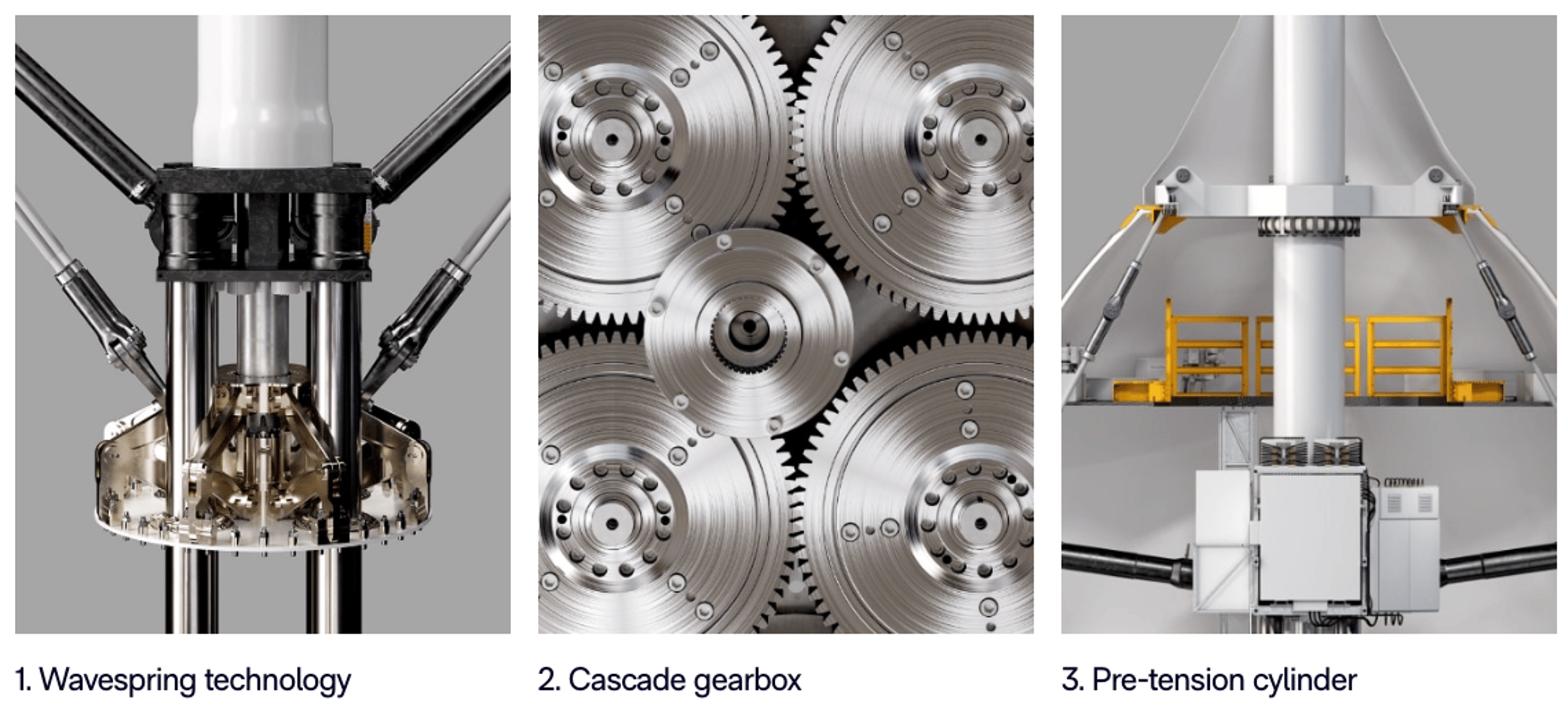 Spoločnosť CorPower tvrdí, že jej obrovské bóje C4 (sú 19 m vysoké a majú priemer 9 m) sa odlišujú novou technológiou fázového riadenia s názvom WaveSpring. Vnútorný pneumatický valec je vopred napnutý, aby ťahal bóju smerom nadol, takže pri absencii aktívneho ovládania bója jednoducho zostáva v „transparentnom“ režime bez ohľadu na to, aké vysoké sú vlny. To funguje ako bezpečnostný mechanizmus v najhorších podmienkach.