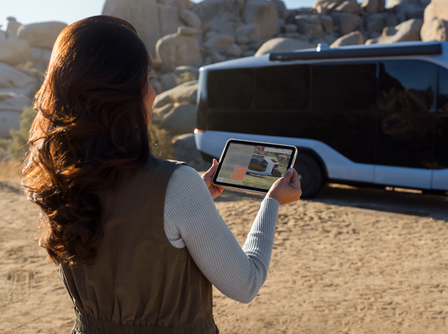 Po príchode do kempu môže majiteľ príves odpojiť a pomocou aplikácie ho ovládať ako obrovské auto na diaľkové ovládanie. Tento 7,5 metra dlhý kolos tak dokáže s chirurgickou presnosťou zaparkovať aj na tie najtesnejšie miesta bez toho, aby bolo nutné s autom opakovane a stresujúco cúvať. O výpočtový výkon potrebný pre tieto autonómne manévre sa stará pokročilý procesor Nvidia Drive AGX Orin. Tým sa však „kúzlo“ nekončí.
