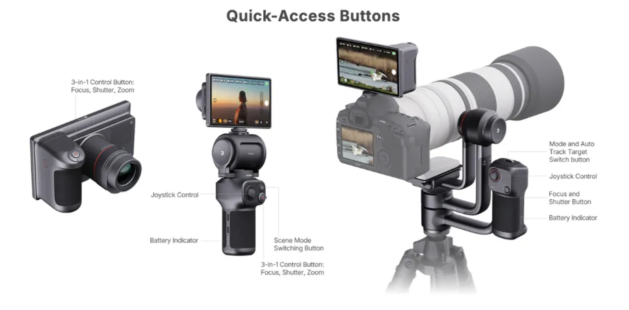 Konštrukcia kamery je navrhnutá pre maximálnu prenosnosť. Zariadenie nemá vlastný hľadáčik ani displej; namiesto toho sa bezdrôtovo pripája k mobilnému telefónu, ktorý slúži ako monitor a ovládacie centrum. To umožňuje fotografovi umiestniť kameru na statív a pohodlne ju ovládať z diaľky, čím sa eliminuje riziko roztrasenia záberu dotykom spúšte.