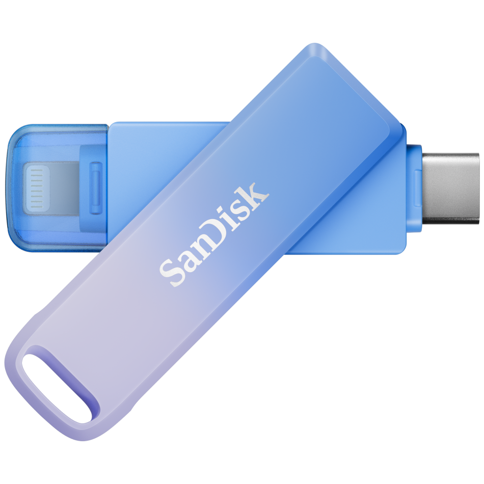 - SanDisk Creator Phone Drive: Tento disk je ideálny pre tvorcov pracujúcich s viacerými zariadeniami, je vybavený konektormi Lightning aj USB Type-C™ a ponúka až 256 GB1 na efektívnu správu fotografií vo vysokom rozlíšení, veľkých videosúborov alebo dôležitých dokumentov. S aplikáciou SanDisk Memory Zone na mobilných zariadeniach so systémom Android™ môžete automaticky zálohovať všetky svoje obľúbené súbory.11