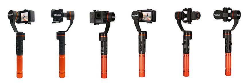 Rollei Pro Smartphone Gimbal je stabilizátor pro mobilní telefony s úhlopříčkou do 6“ a Rollei Pro Actioncam Gimbal je vhodný pro akční kamery Rollei a GoPro o velikosti až 62,5 x 45,8 x 33 mm a váze v rozmezí 75 - 125g. V obou případech jsou stabilizátory vyrovnávané ve třech osách a eliminují třes rukou, naklánění záběru, rozmazání a další nechtěné rušivé prvky, které do záběrů nepatří. Díky tomu budou záběry z dovolených, sportovních zážitků či pro youtube kanál na profesionální úrovni. Celý stabilizátor Rollei Gimbal je vyroben z lehkého hliníku a je vybaven joystickem pro snadné ovládání a náklon záběru videa.