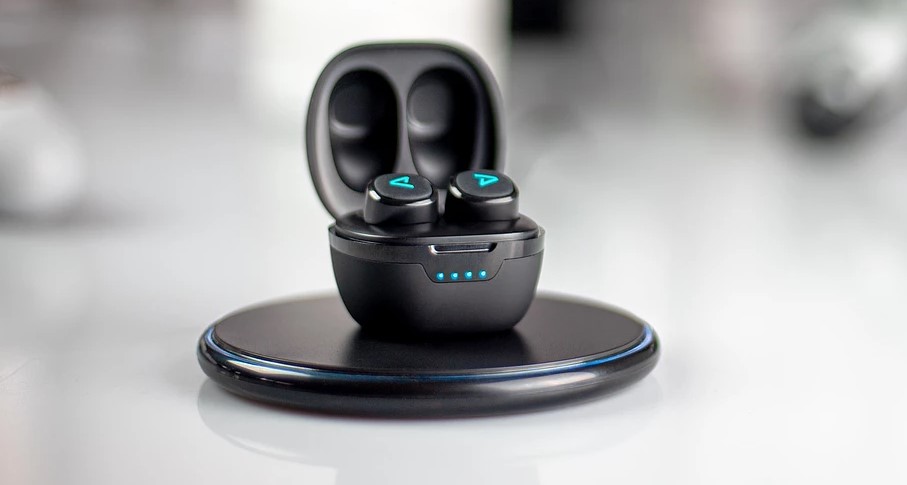 Nabíjacie puzdro z kvalitného plastu má kompaktný a elegantný tvar a príjemnú jemne matnú povrchovú úpravu. Prednej strane dominuje štvorica LED diód, ktoré ukazujú aktuálny stav nabitia batérie v puzdre. Na nabíjanie môžete použiť USB-C káblik, alebo bezdrôtovú nabíjačku štandardu Qi, prípadne smartfón s podporou reverzného bezdrôtového nabíjania.