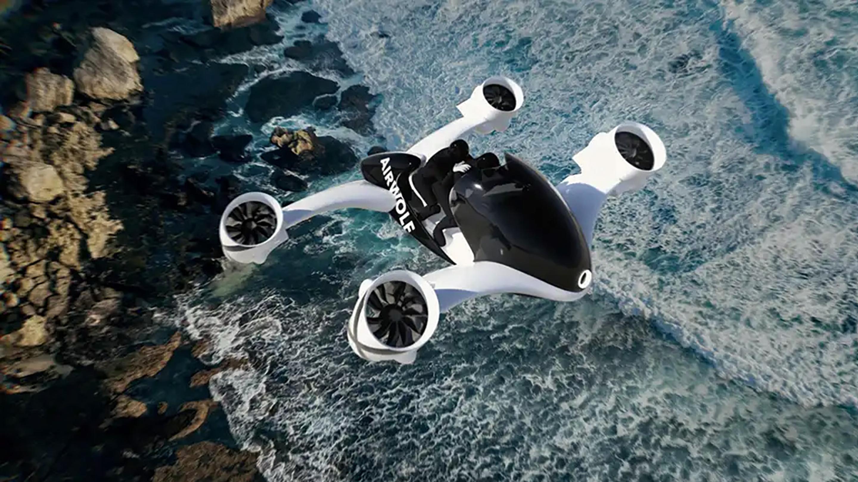 Airwolf je určený pre dve osoby a vybavený krídlami, ktoré vytvárajú 50 % vztlaku potrebného na udržanie vo vzduchu, čo vedie k efektívnejšiemu letu a dlhšiemu doletu. Hoci by mal vážiť statných 230 kg, sľubuje zrýchlenie z 0 na 96 km/h za tri sekundy a maximálnu rýchlosť 229 km/h. Má však dosť vysokú cenu 320 000 USD.