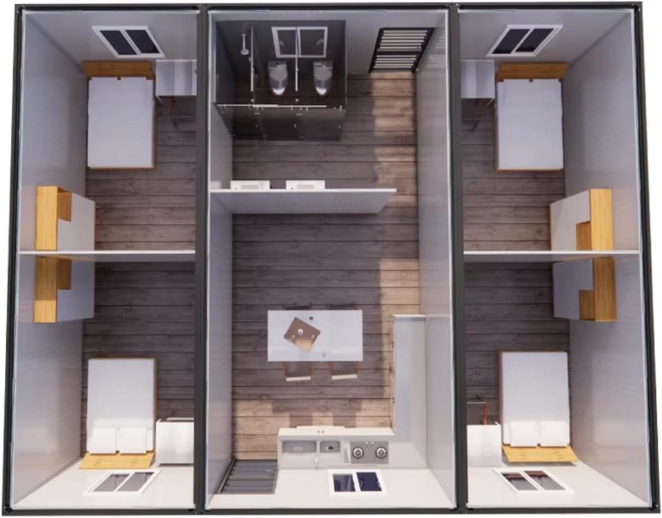 Modulárny dizajn ponúka bezkonkurenčnú flexibilitu. Či už potrebujete viac miesta pre hostí, alebo uvažujete o zmenšení na samostatné bývanie, tieto montované domy sa môžu podľa potreby rozširovať alebo zložiť. Dajú sa využívať ako prechodný rekreačný dom, ale aj ako trvalé bydlisko.